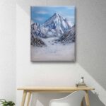 Obraz dedykowany miłośnikom gór i nie tylko, namalowany jest farbami akrylowymi na bawełnianym płótnie. Idealnie sprawdzi się w jasnych przestrzeniach. Boki są starannie zamalowane jako kontynuacja obrazu, więc nie wymaga ramy. Pokryty jest ochronnym matowym werniksem, który nadaje głębi kolorom. Możliwy jest także zakup reprodukcji obrazu w formie wydruku na płótnie w dowolnej wielkości. O szczegóły dotyczące ceny reprodukcji proszę pytać telefonicznie lub mailowo.