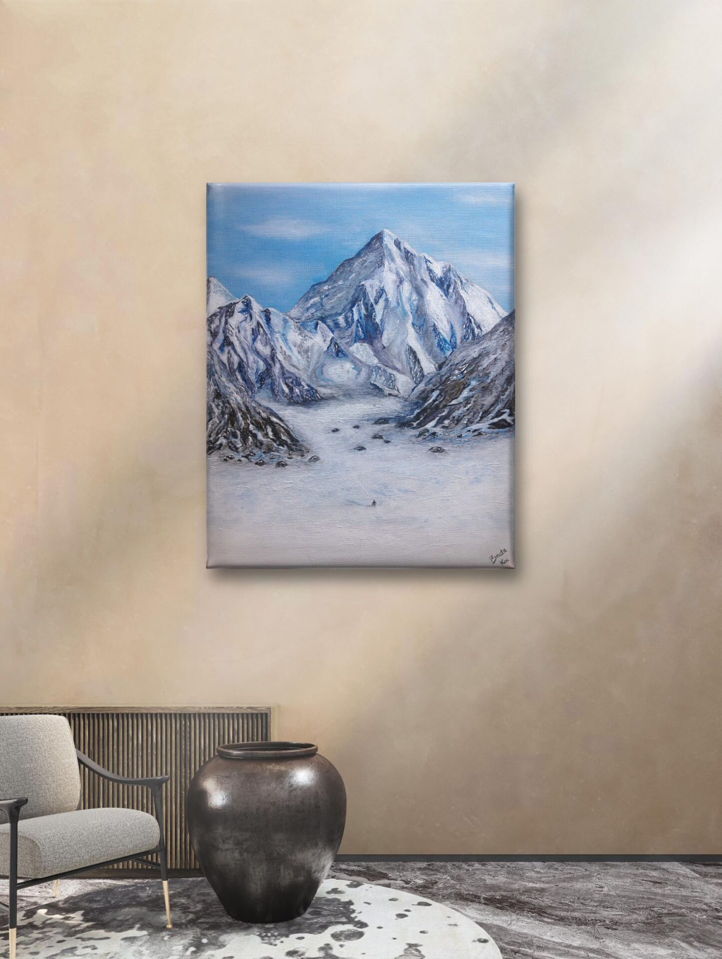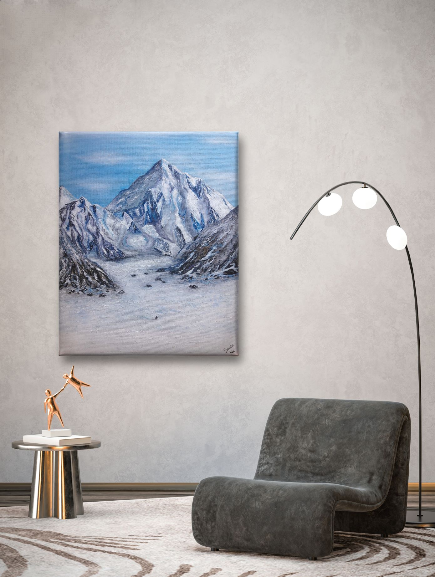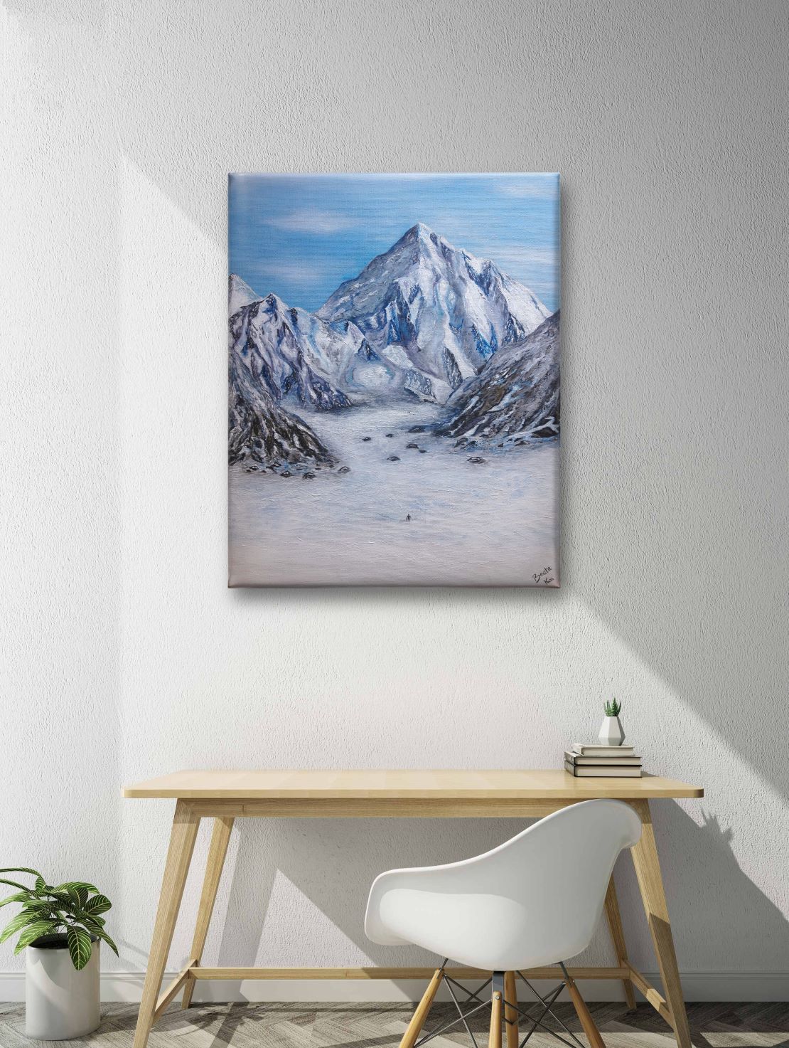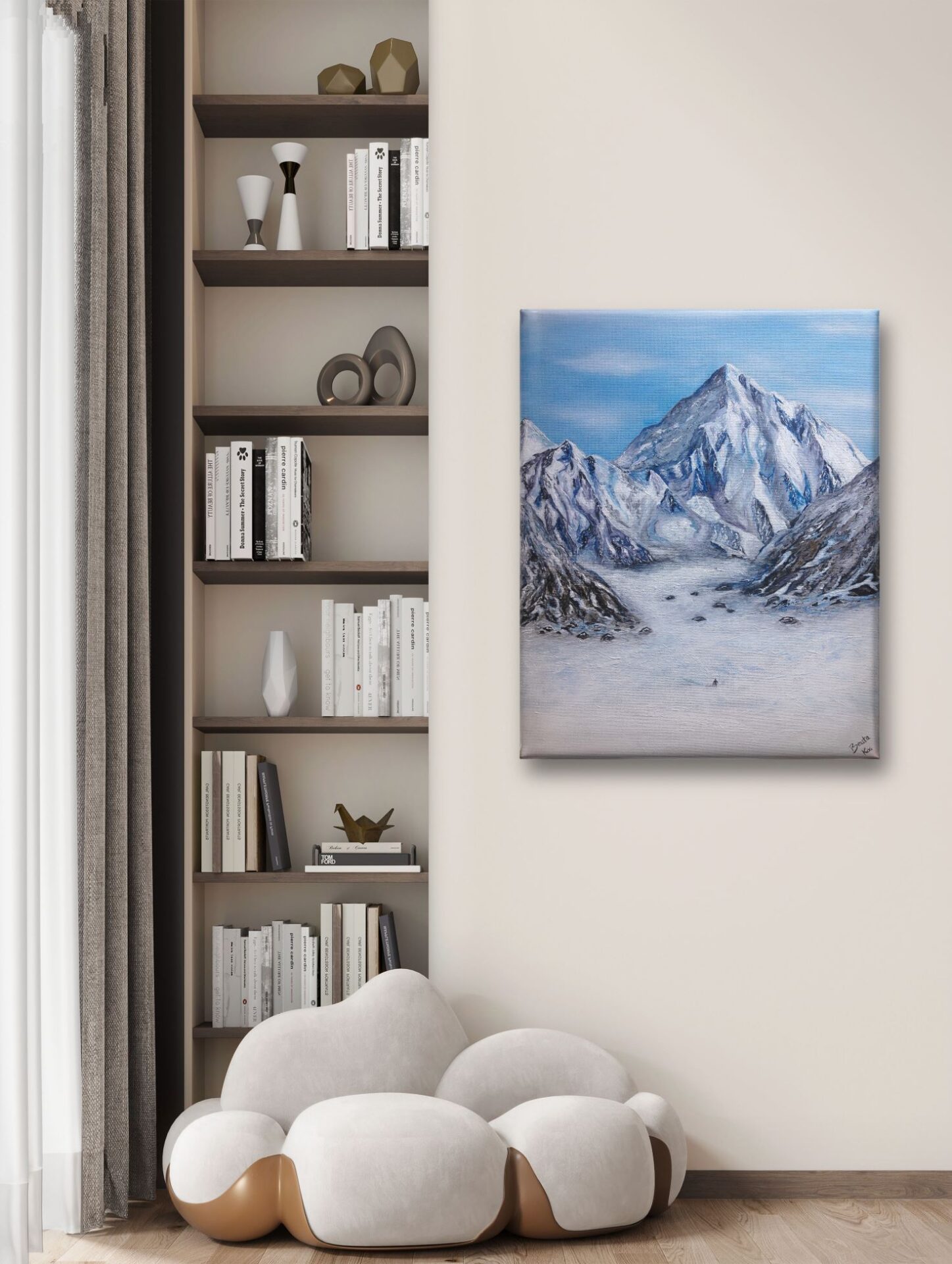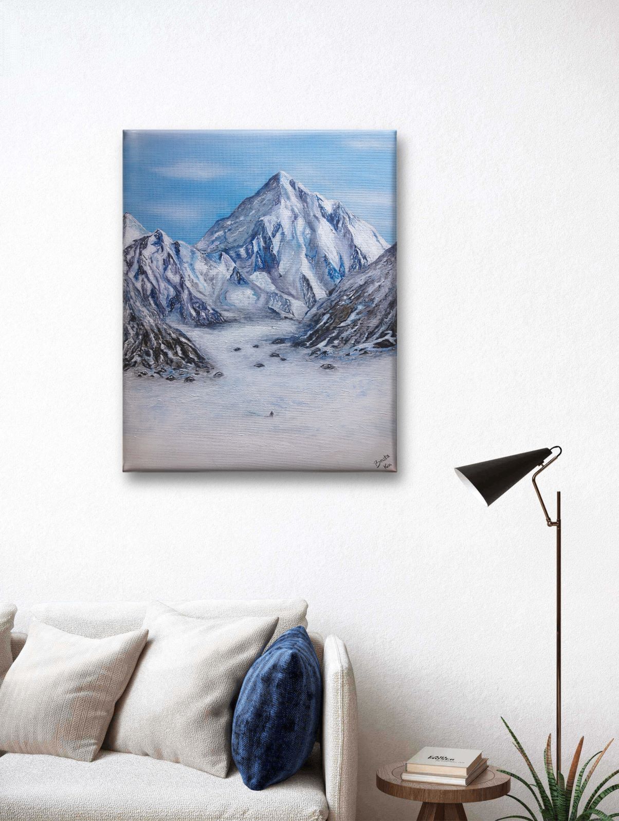 Obraz dedykowany miłośnikom gór i nie tylko, namalowany jest farbami akrylowymi na bawełnianym płótnie. Idealnie sprawdzi się w jasnych przestrzeniach. Boki są starannie zamalowane jako kontynuacja obrazu, więc nie wymaga ramy. Pokryty jest ochronnym matowym werniksem, który nadaje głębi kolorom. Możliwy jest także zakup reprodukcji obrazu w formie wydruku na płótnie w dowolnej wielkości. O szczegóły dotyczące ceny reprodukcji proszę pytać telefonicznie lub mailowo.