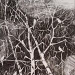 Tryptyk wykonany na papierze kredowym. Techniką autorską, tuszem, piórkiem, żyletką…