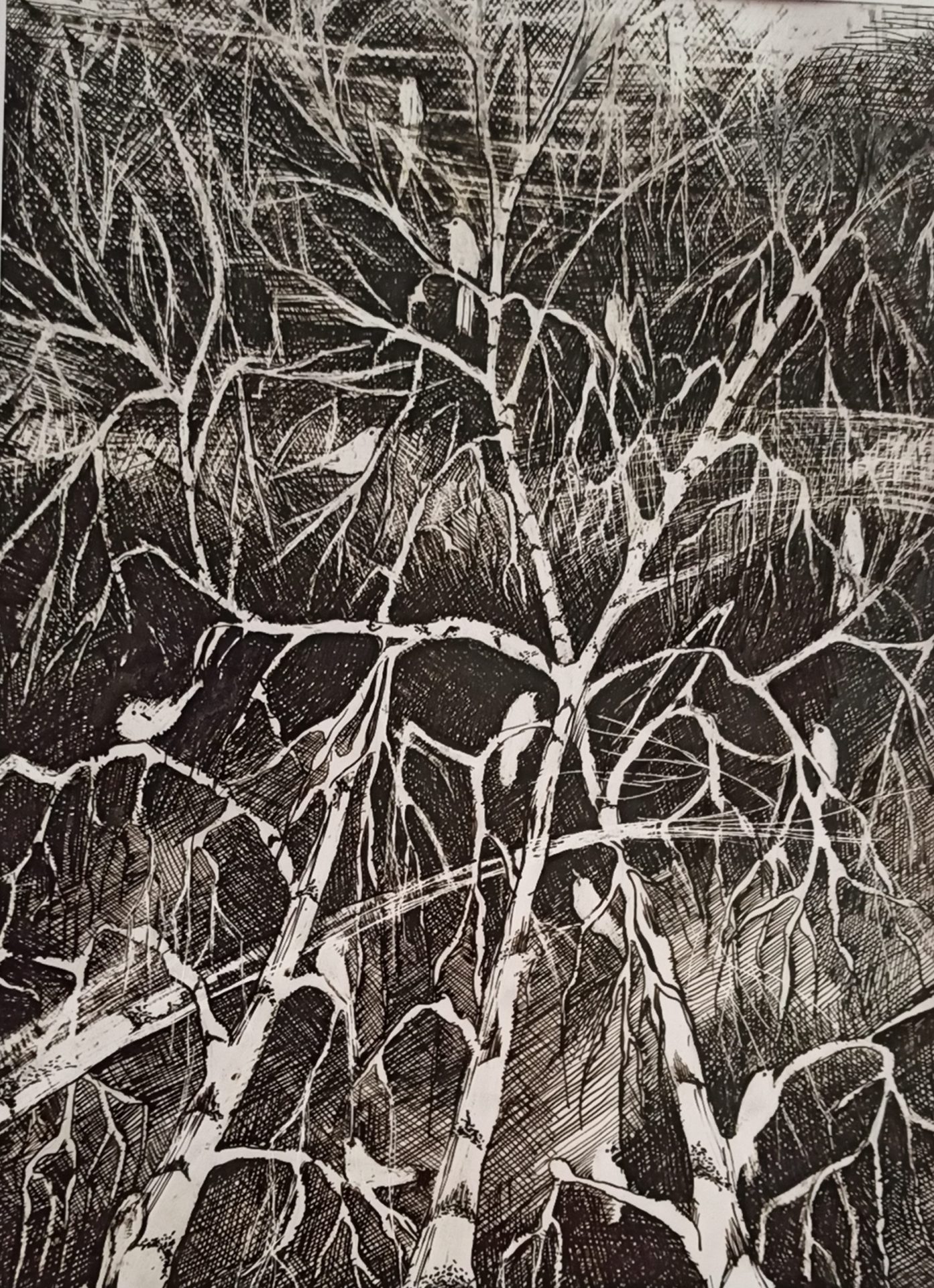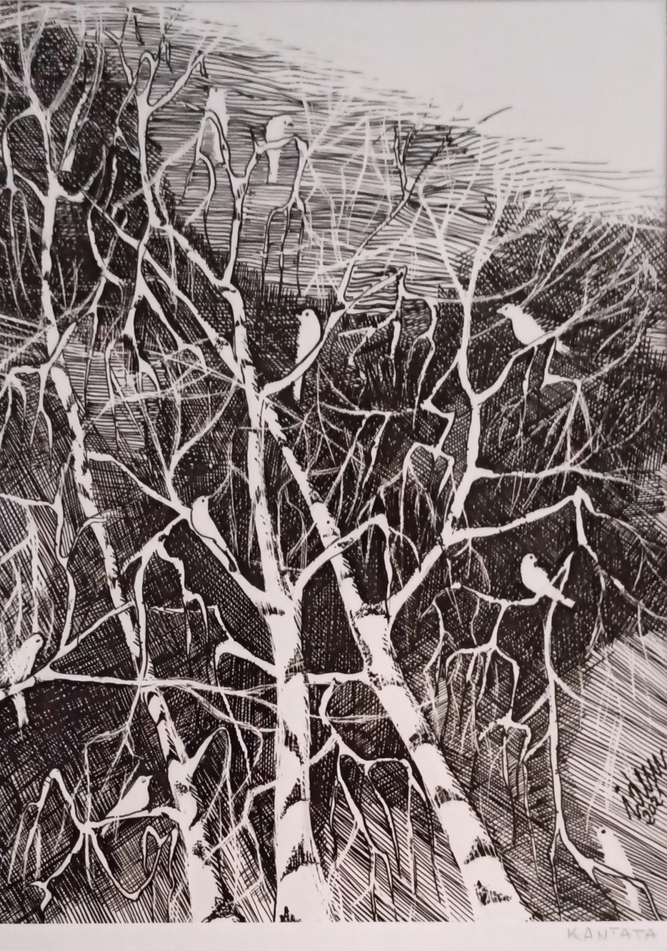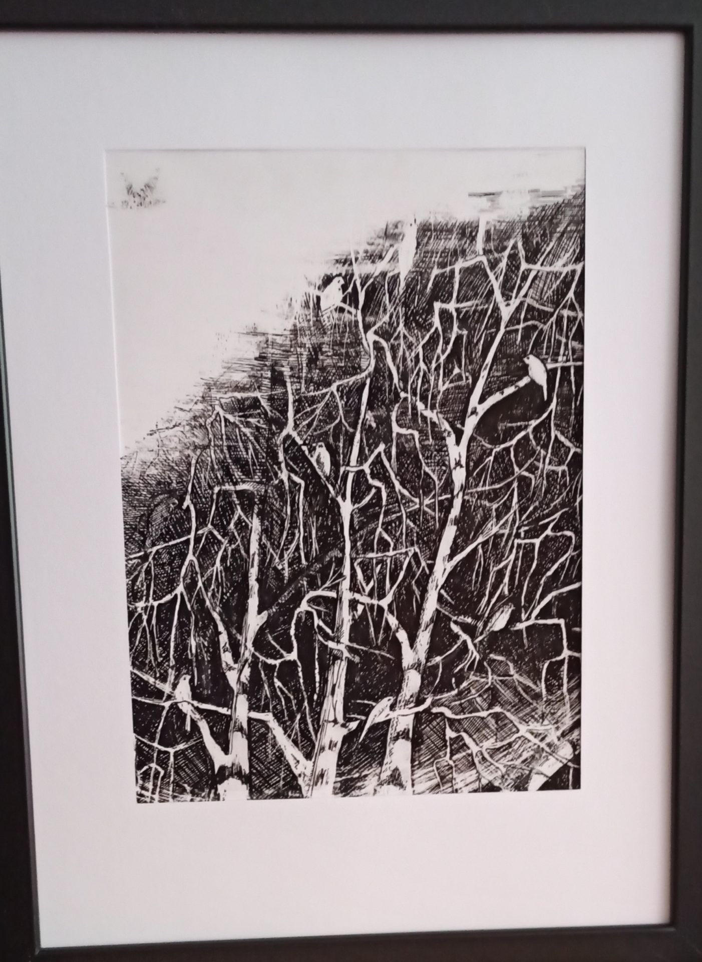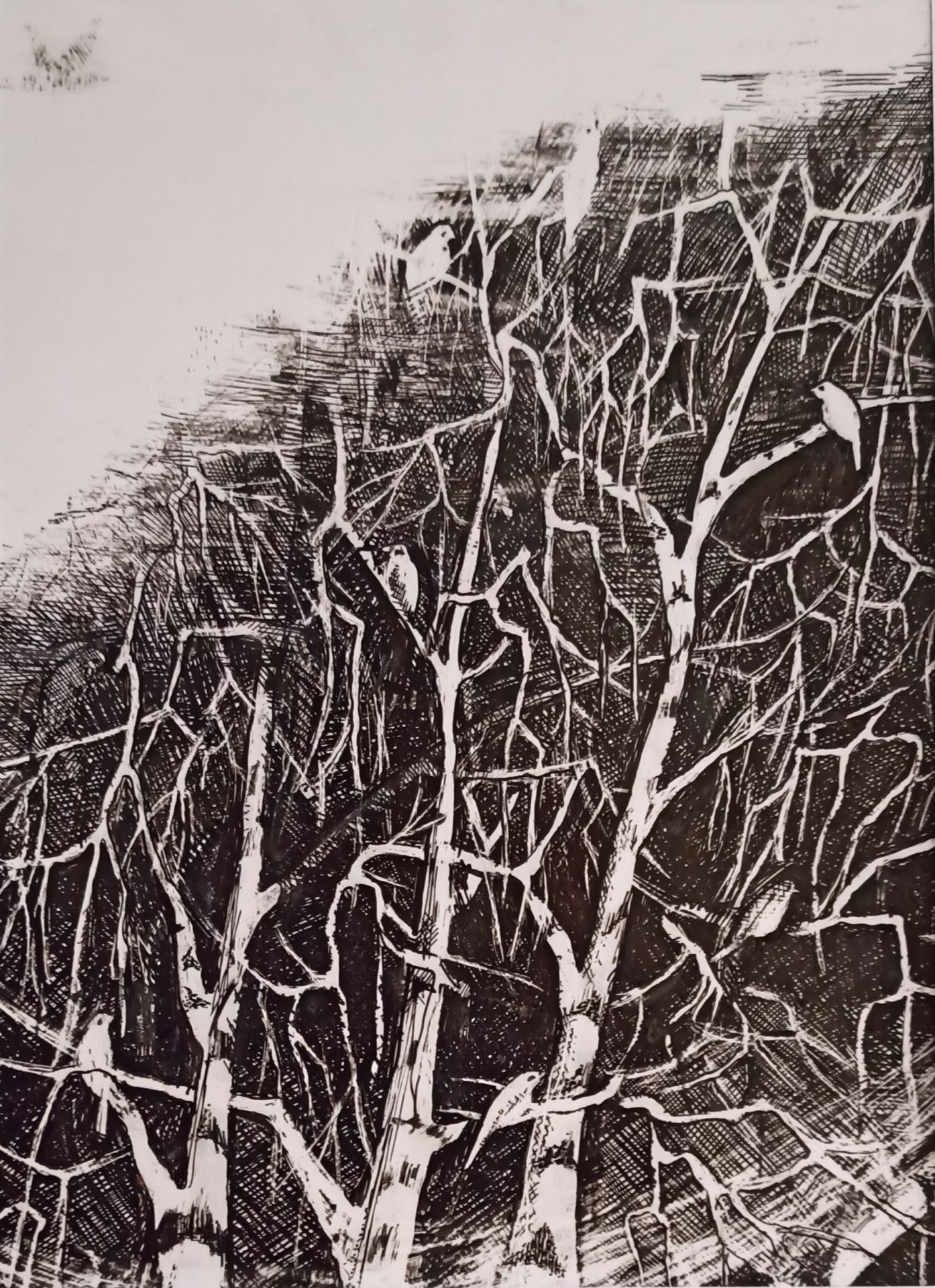 Tryptyk wykonany na papierze kredowym. Techniką autorską, tuszem, piórkiem, żyletką…