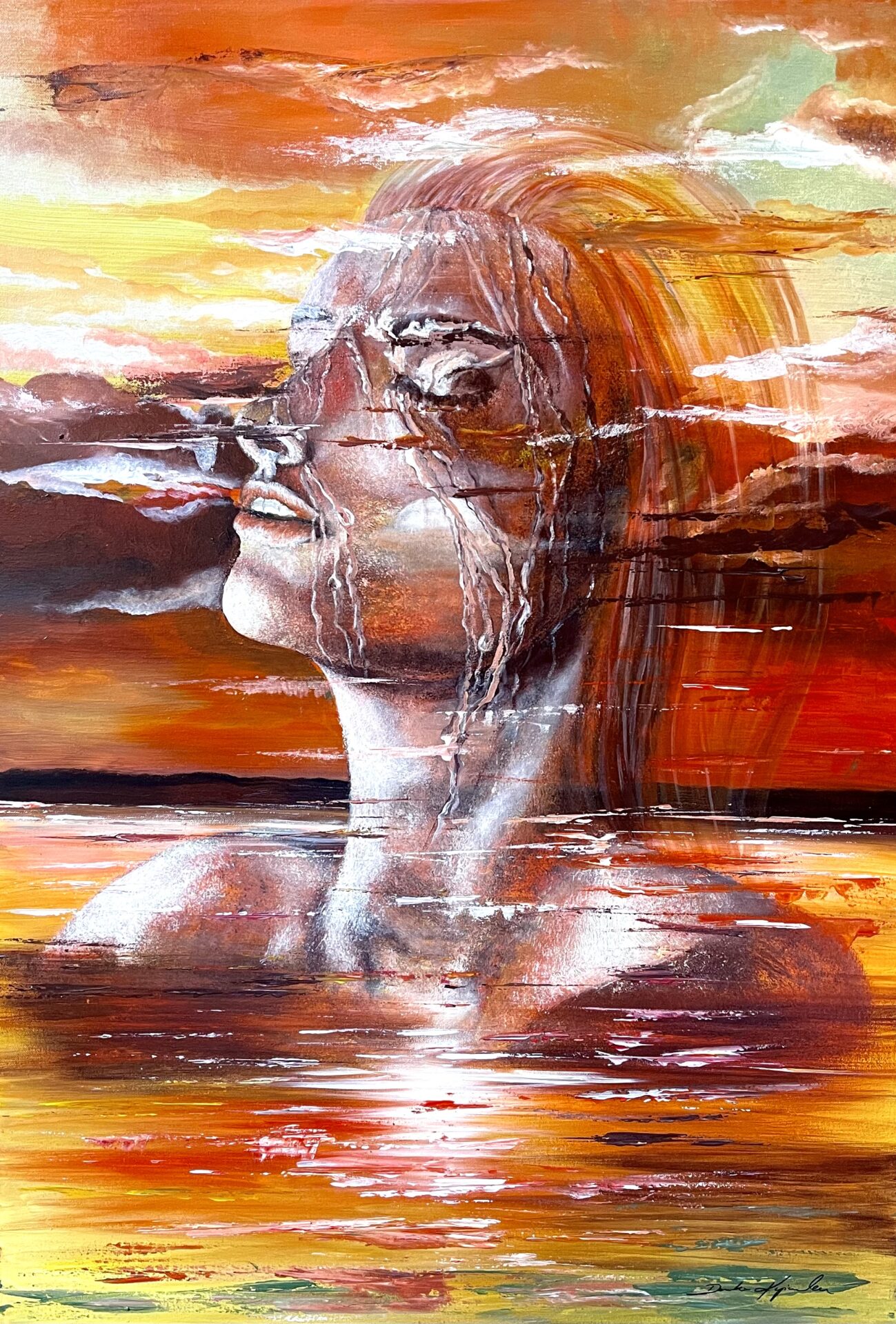 Przedstawiony obraz jest to akryl na płótnie o wymiarach 100 cm na 70 cm. Pokryty werniksem i sygnowany moim nazwiskiem.