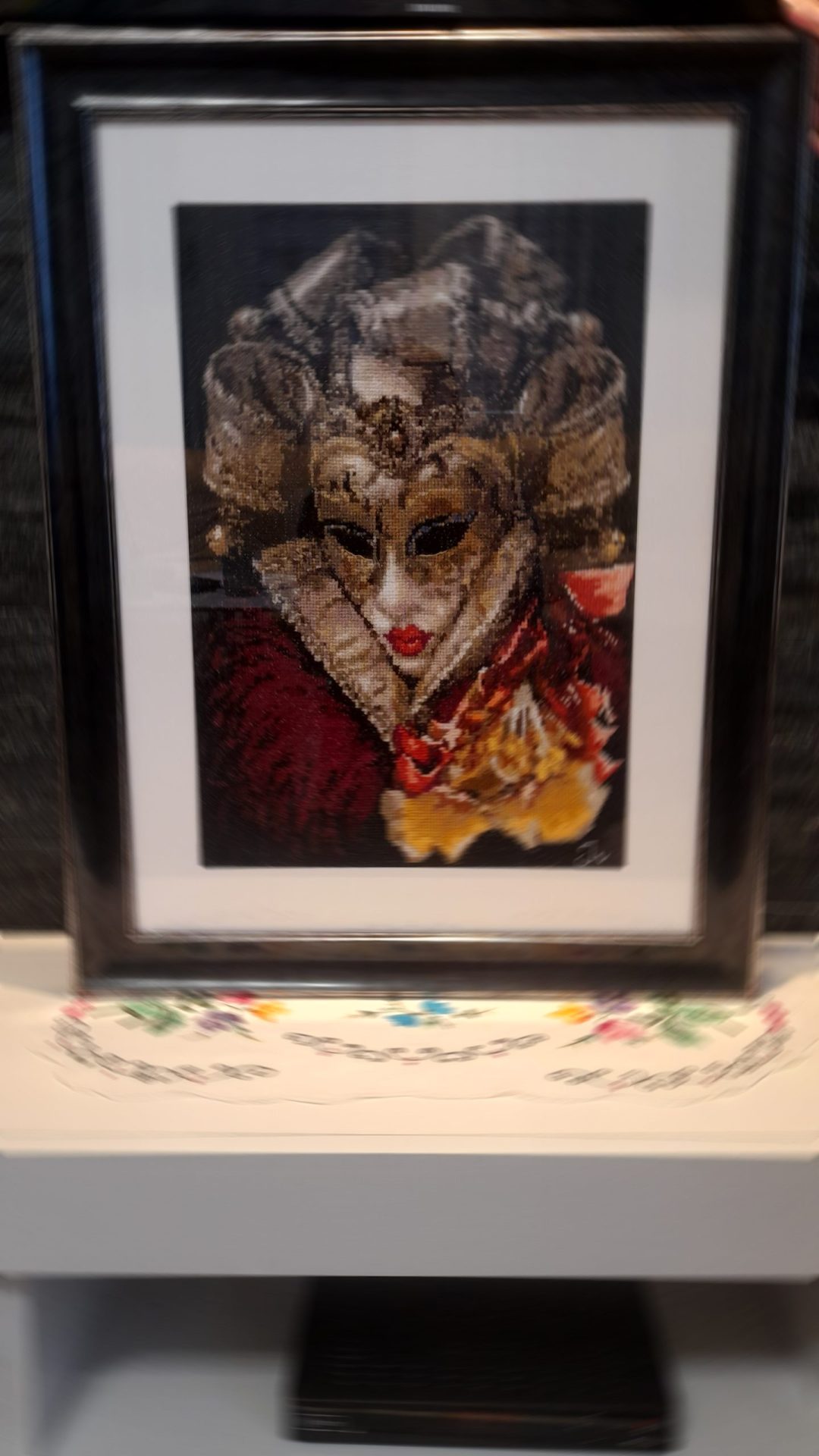 Praca wykonana ręcznie ,haft krzyżykowy .Ilość krzyżykowy 28.000.Obraz Oprawiony drewnianą ramą w kolorze czarnym z dodatkiem szarości.