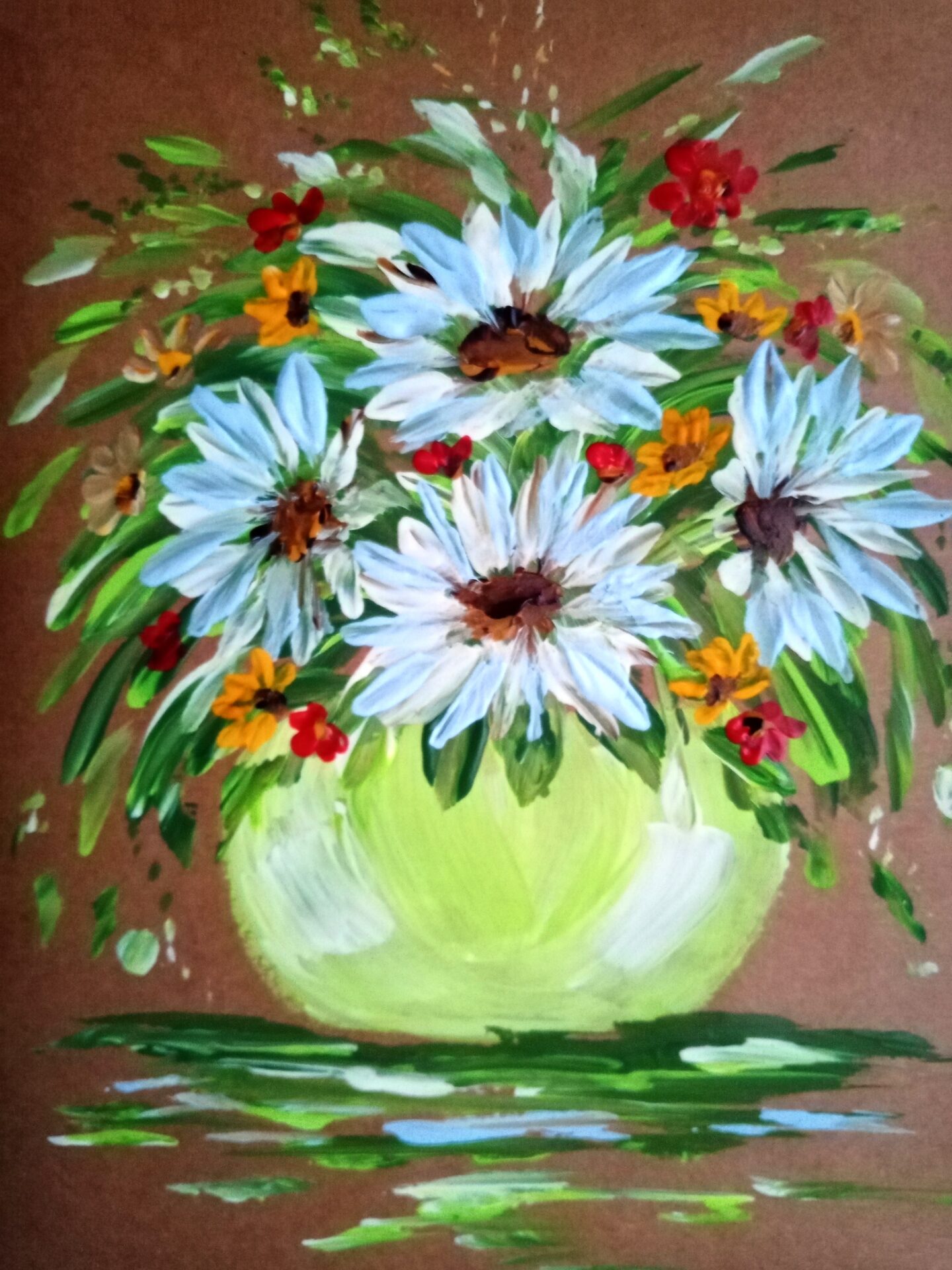 Ręcznie malowana kartka okolicznościowa o wymiarach 15×21. Zostały użyte wysokiej jakości farby akrylowe. Kartka jest sygnowana.