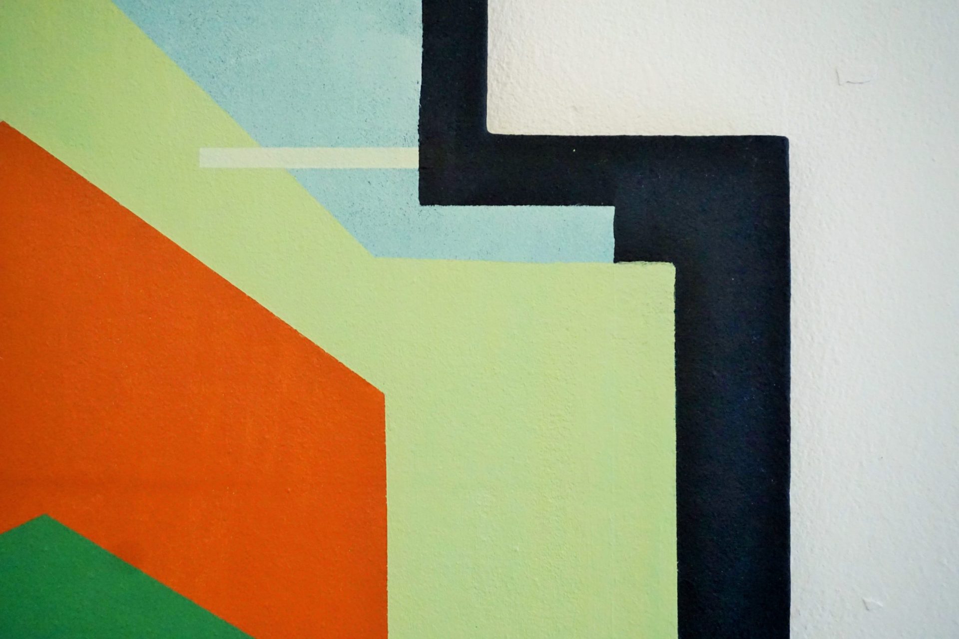 Kompozycja geometryczna. Przedstawiająca widok architektury w kaskadowy ujęciu. Obraz idealnie pasuje do wnętrz domu jak i biur.