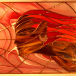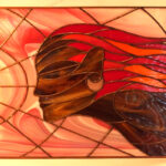 Obraz witrażowy wykonany ręcznie w technice Tiffany. Składa się z 71 elementów szklanych połączonych lutowiem. Obraz oprawiony jest w profil miedziany, do którego przylutowany jest mosiężny łańcuszek umożliwiający powieszenie. Zaprojektowany w Pracowni Artystycznej Cahaya w sercu Gór Świętokrzyskich. Certyfikat autentyczności pracy.