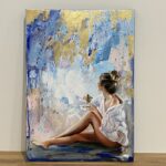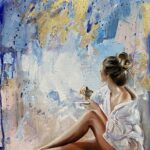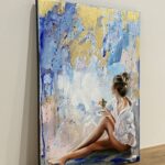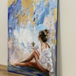 • Obraz malowany wysokiej jakości farbami olejnymi na płótnie bawełnianym z dodatkami płatków złota o wymiarze 70×50cm, rok wykonania 2023.