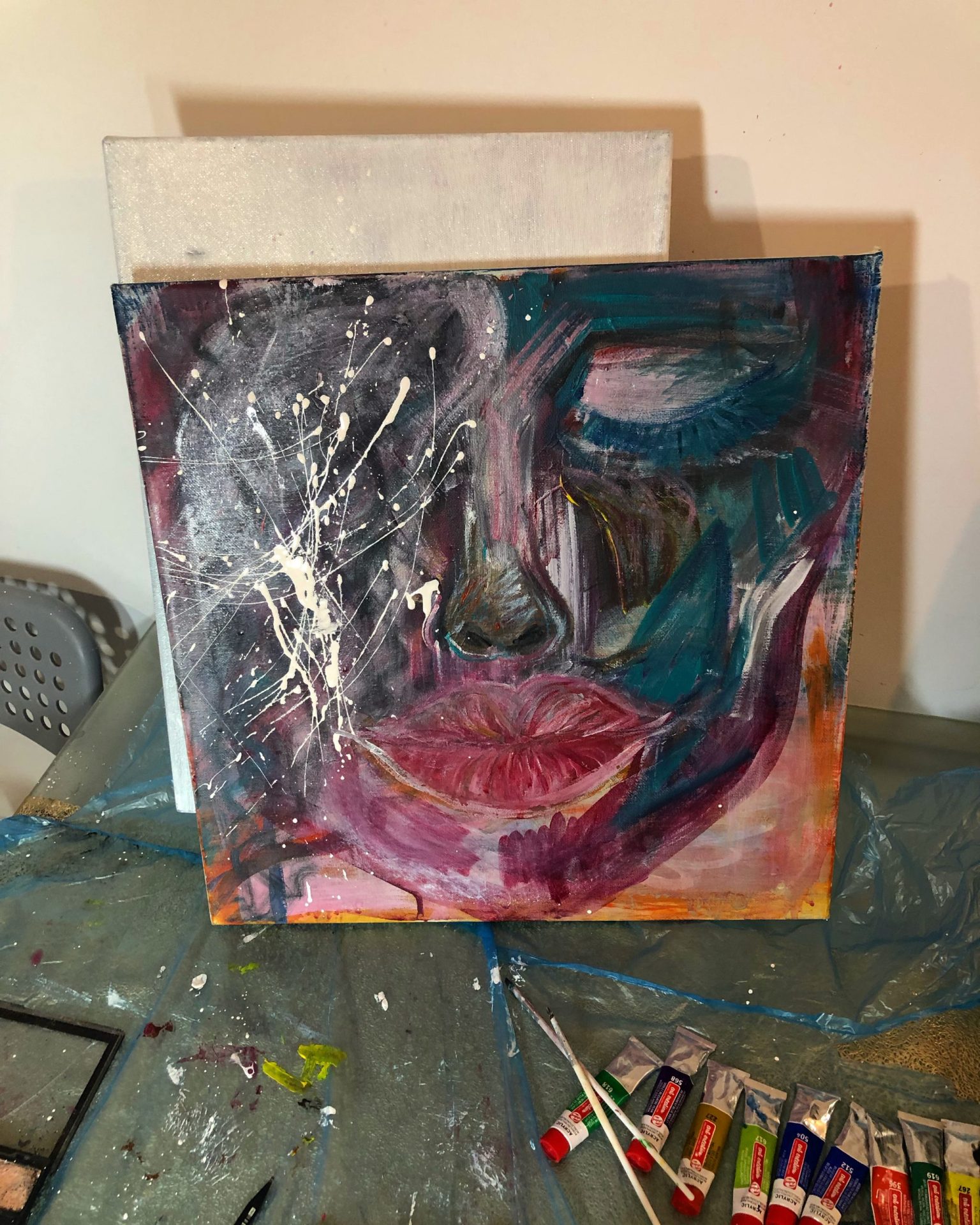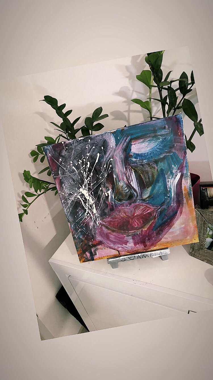 Zamkniete oko oznaczać ma emocjonalny spokój, jednocześnie kolory zostały dobrane tak by wyrażały to czego nie można wyczytać z oczu , ale wciąż jest