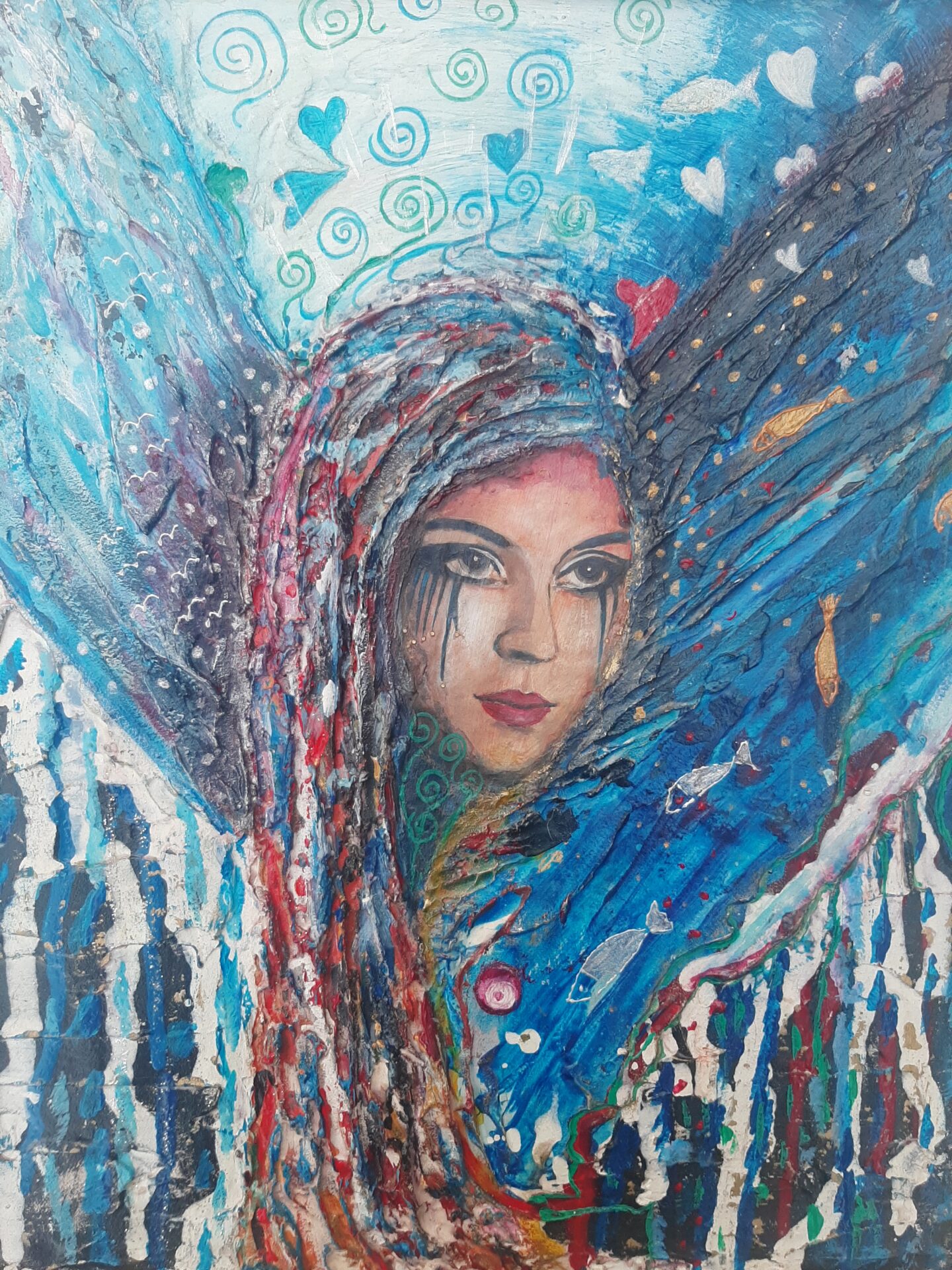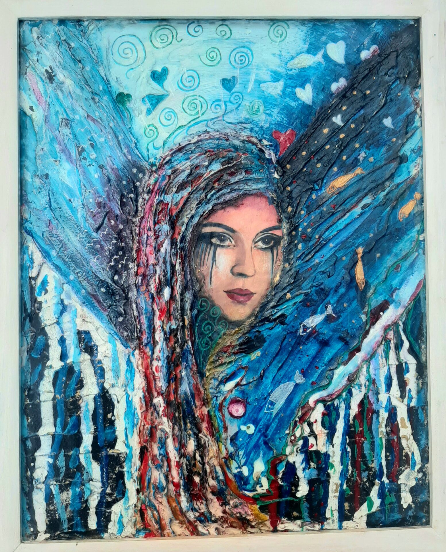 Obraz wykonany techniką mieszaną. Użyłam gipsu dentystycznego ( twardego) żeby uzyskać efekt 3D