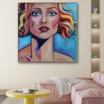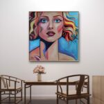Obraz dziewczyny o głębokim, tajemniczym spojrzeniu, za sprawą intensywnej palety barw, emanuje pełnią życia i energią, a jednocześnie spokojem i delikatnością. Dzięki temu wnętrze nabierze niepowtarzalnego charakteru. Namalowany jest farbami akrylowymi na bawełnianym płótnie. Boki są starannie zamalowane jako kontynuacja obrazu, więc nie wymaga ramy. Pokryty jest ochronnym matowym werniksem, który nadaje głębi kolorom. Możliwy jest także zakup reprodukcji obrazu w formie wydruku na płótnie w dowolnej wielkości. O szczegóły dotyczące ceny reprodukcji proszę pytać telefonicznie lub mailowo.