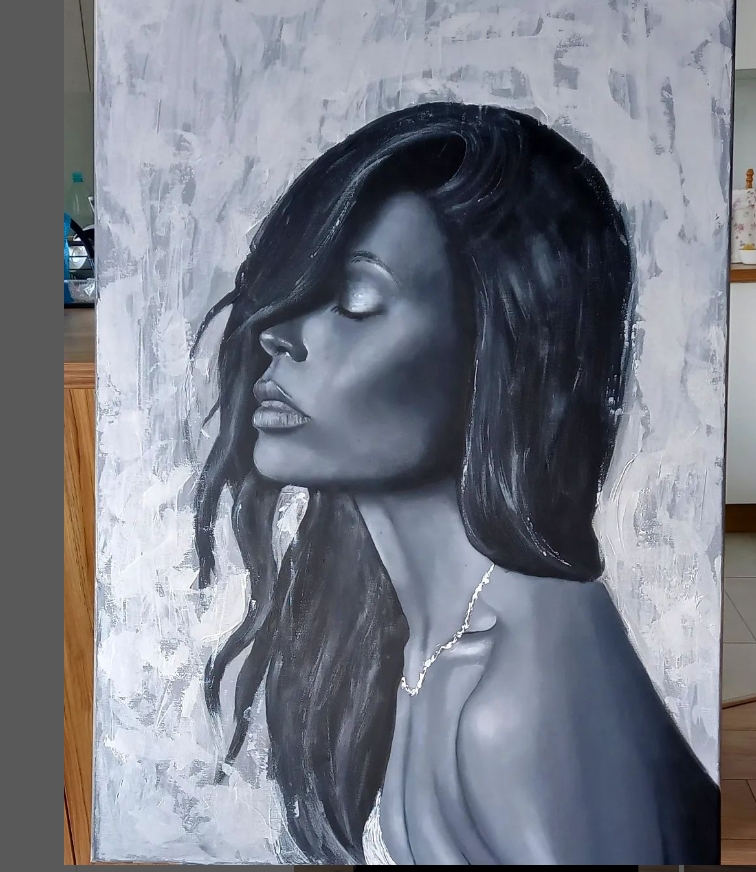 Obraz ręcznie malowany farbami akrylowymi na płótnie, kolorystyka czerń i biel. Boki obrazu zamalowane