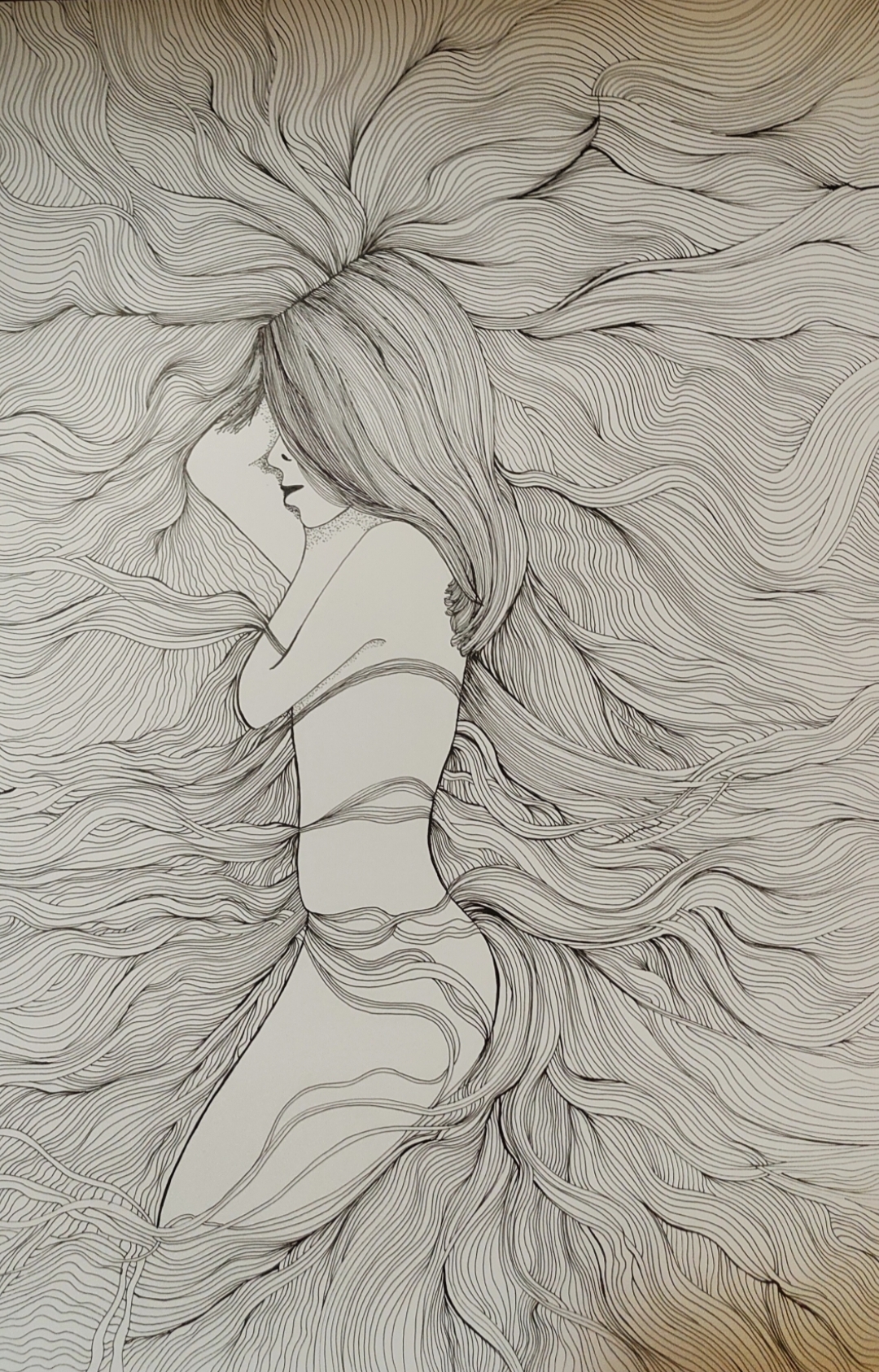 Rysunek wykonany czarnymi cienkopisami gr 0,01-0,05. Papier gr 280. Rozmiar obrazu 61×43 cm.