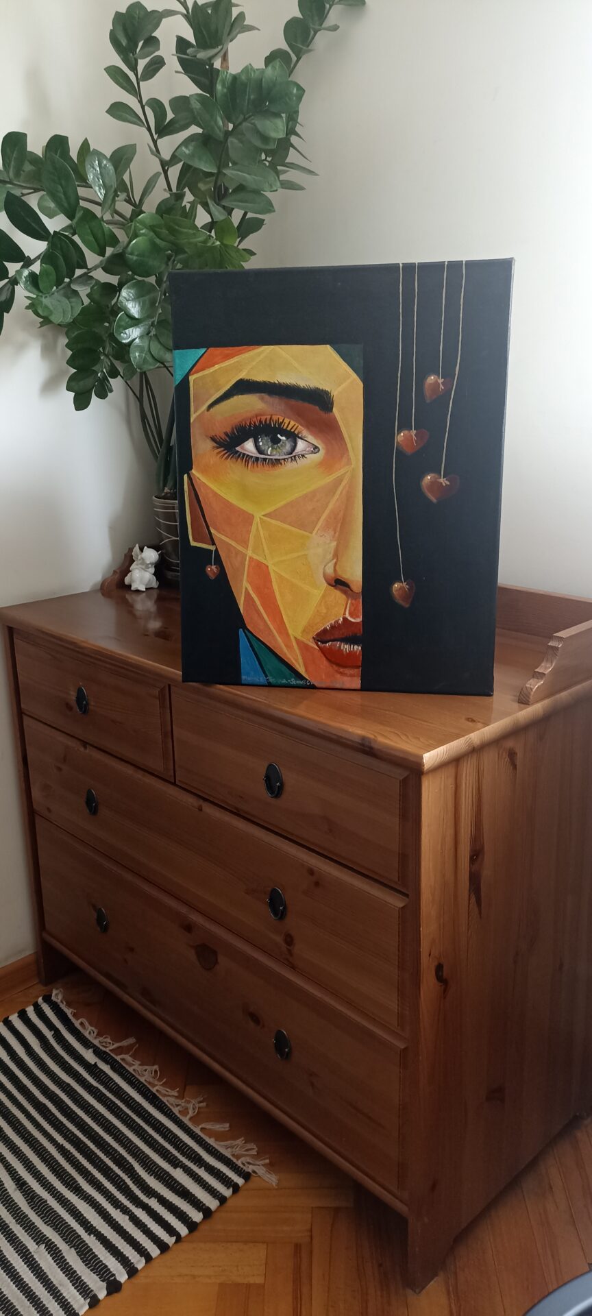 Obraz malowany farbami akrylowymi, na płótnie, zawerniksowany, wykończone boki, 40 x 50, mojego autorstwa, pasuje do nowoczesnych wnętrz, jak i również sprawdzi się we wnętrzu klasycznym.