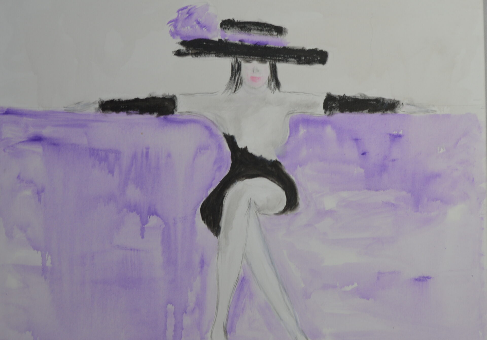 Kobieta w kapeluszu. Obraz malowany farbą akrylową na piance 5 mm oprawiony w antyramę z pleksi.