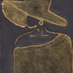 Rysunek został wykonany na kartce a4. Przedstawia kobietę w kapeluszu, która jest namalowana specjalnym złotym żelem (który wysycha po pewnym czasie ). Tło jest pomalowane czarną farbą. Chciałam przedstawić elegancką kobietę na wzór Francuzki.