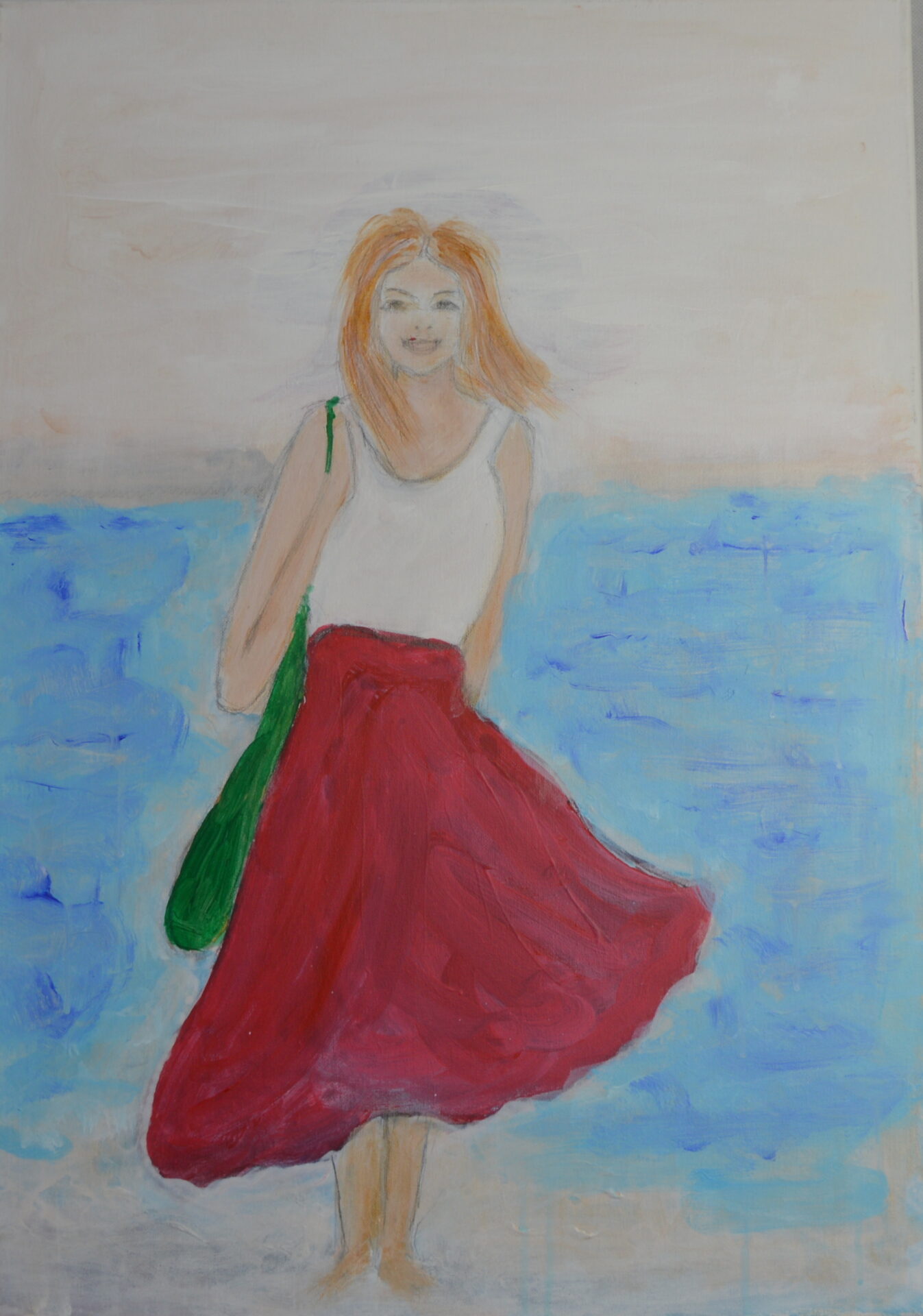Kobieta wesoła. Obraz malowany farbami akrylowymi na płótnie o rozmiarach 50 x 70 cm