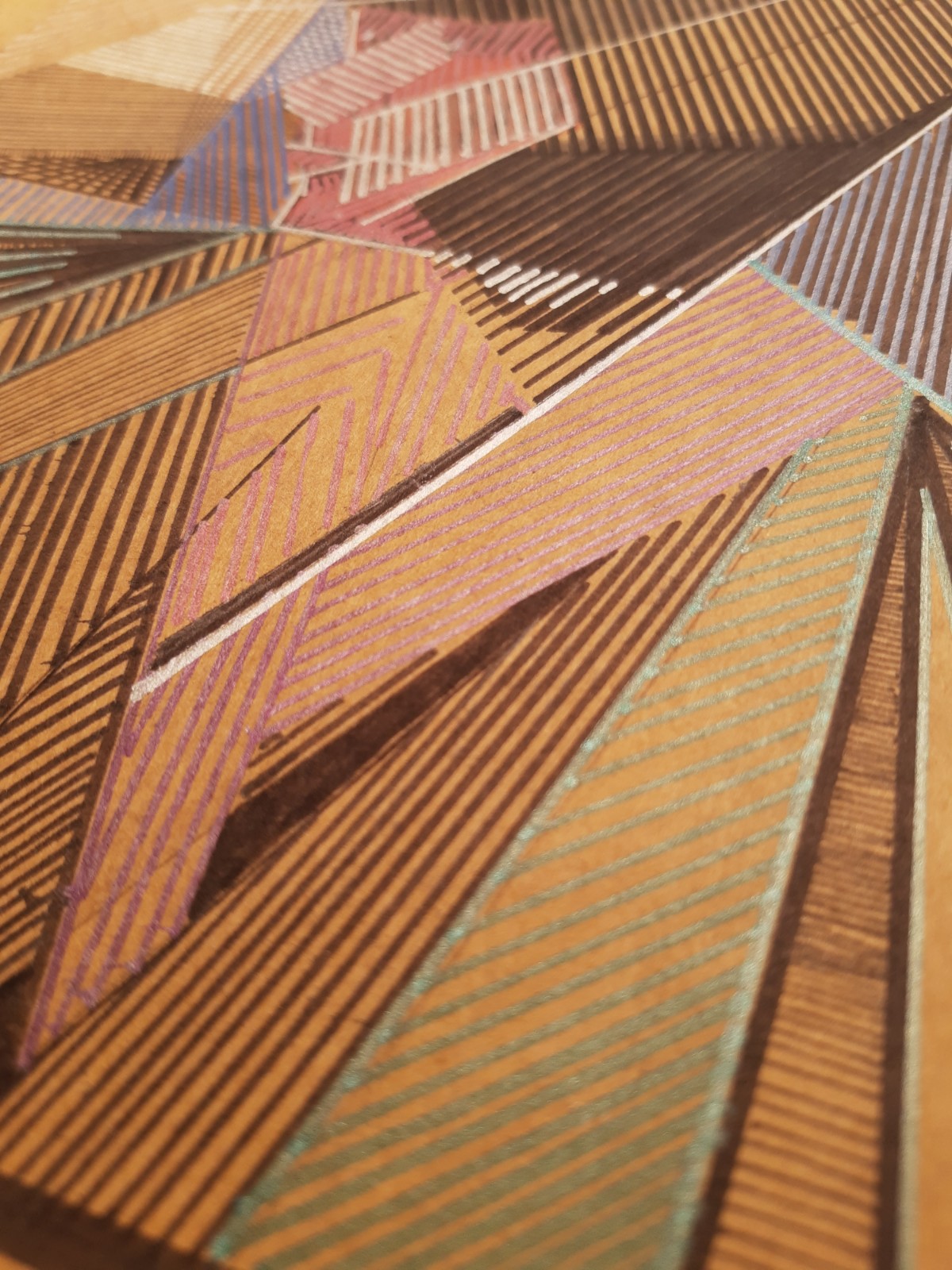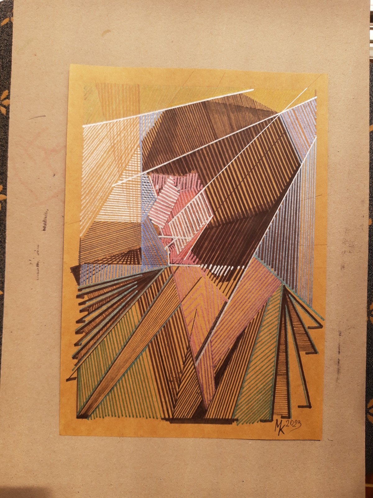 Portret kobiety wykonany perłowymi mazakami i cienkopisami.