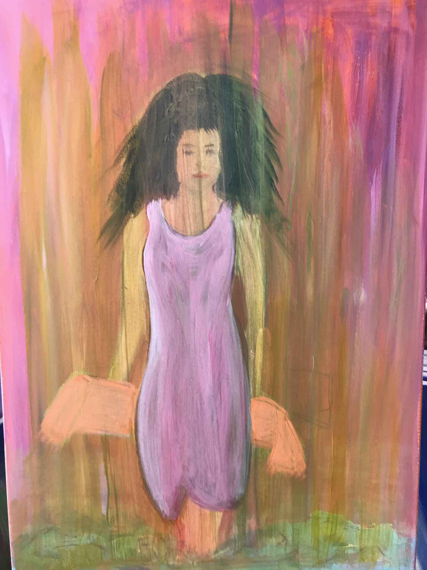 Płótno 50×70 cm. Obraz namalowany farbami akrylowymi. Kolory są intensywne. Obraz jest jednym z wielu namalowanych przez autora w celu obudzenia radosnych uczuć. Może być dobrym prezentem. Może uspakajać i działać leczniczo przy stresie i kiepskich nastrojach.
