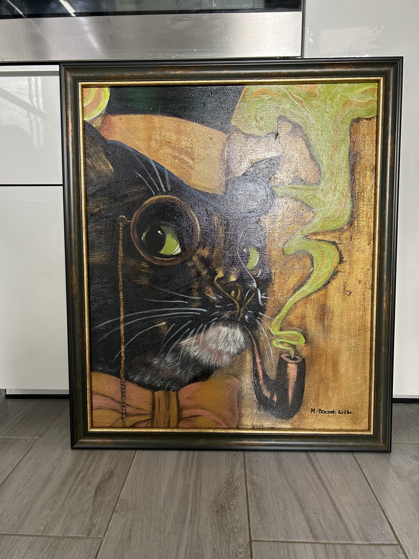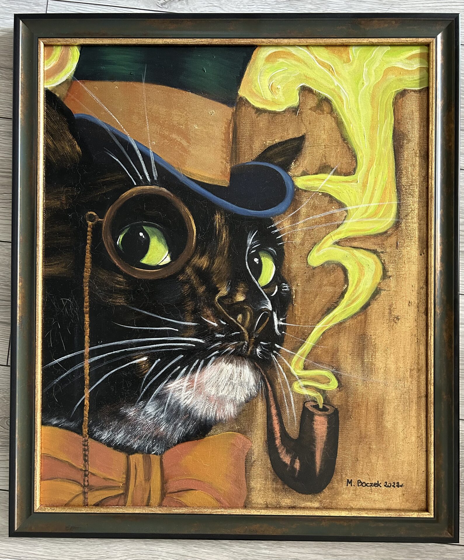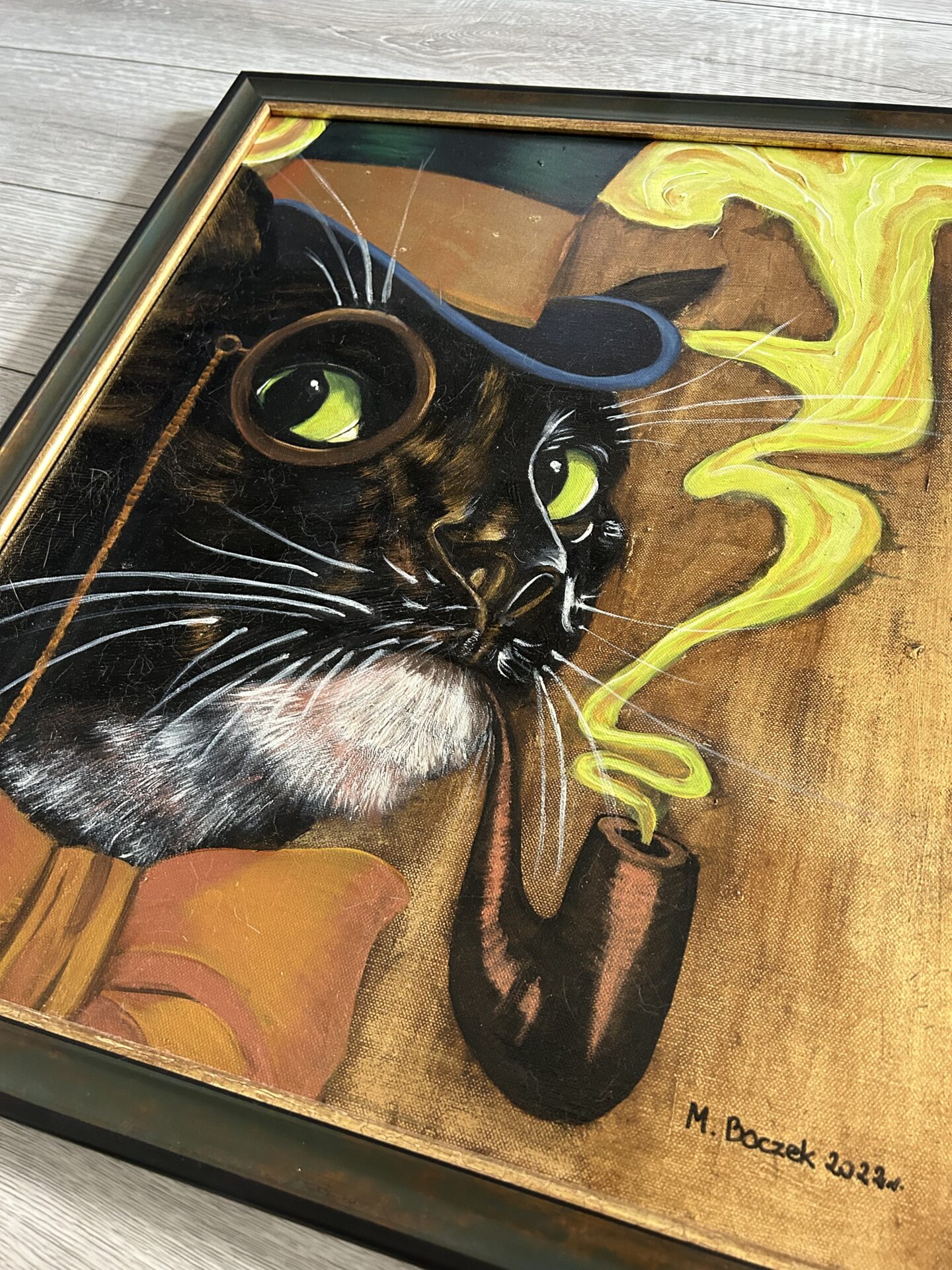 ~ Kocur ~ akryl na płótnie, obraz w ramie, szlagmetal, szpachla, zawerniksowany,
