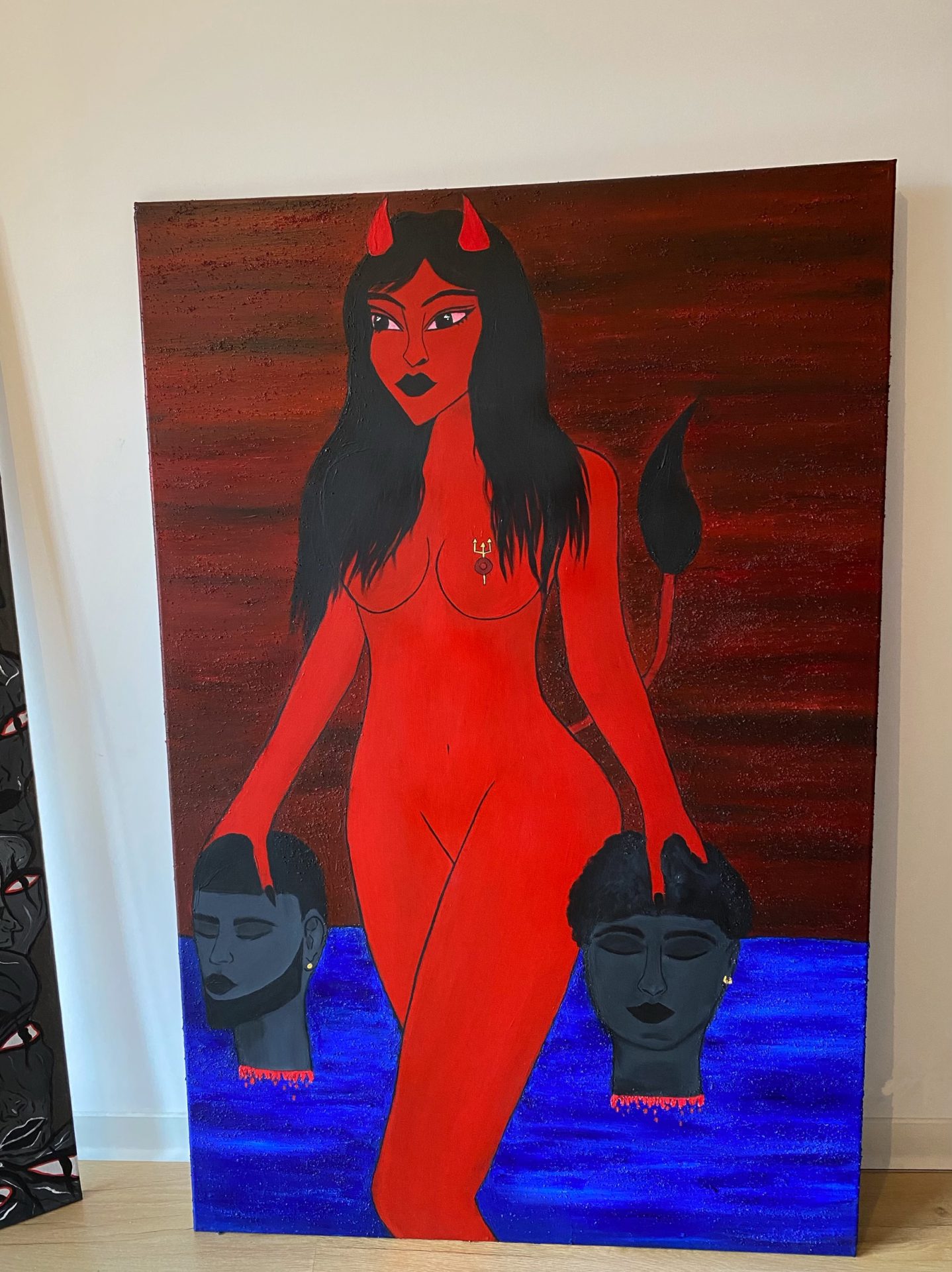 Kokytos w mitologii greckiej jest jedną z pięciu rzek Hadesu, a umarli, którzy nie byli w stanie zapłacić Charonowi za przewóz przez Styks, musieli wędrować jej brzegiem przez sto lat. Obraz przedstawia diablice w piekle przechodzącą przez kokytos trzymającą dwie głowy potępionych dusz.