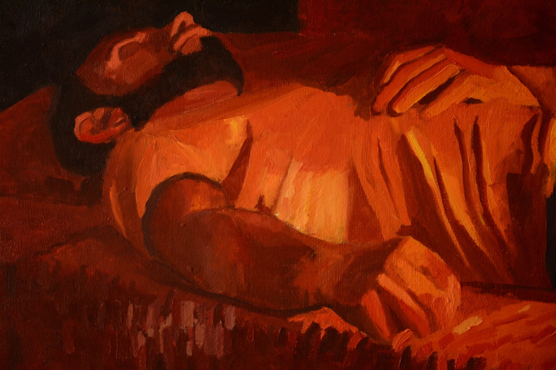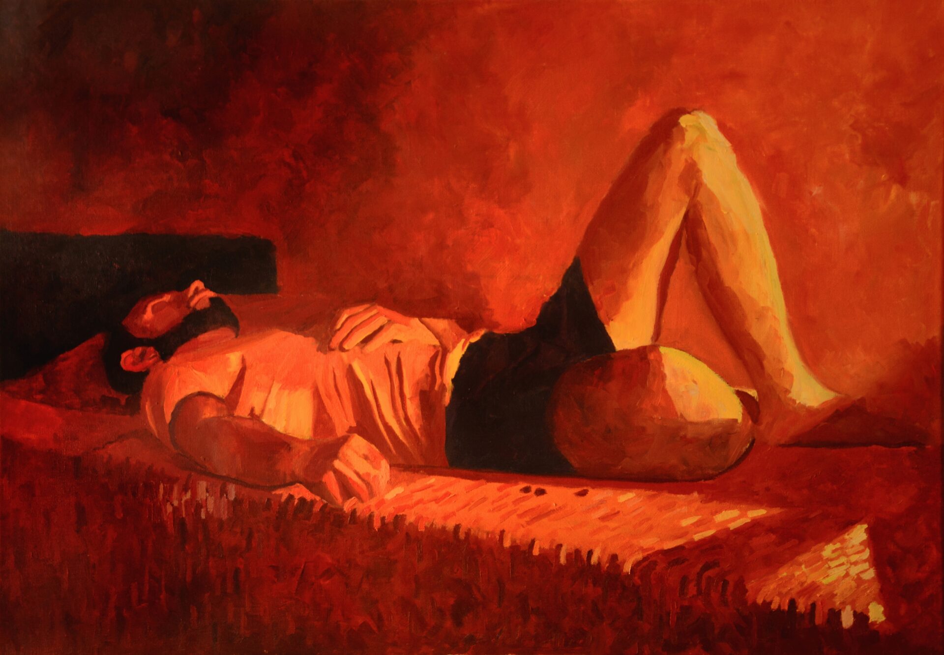 „Kolejny sen o…” autoportret, obraz olejny na płótnie lnianym, 70 cm x 100 cm, rok powstania 2022