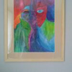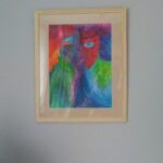 Namalowane na papierze akwarelowym kredkami akwarelowymi.