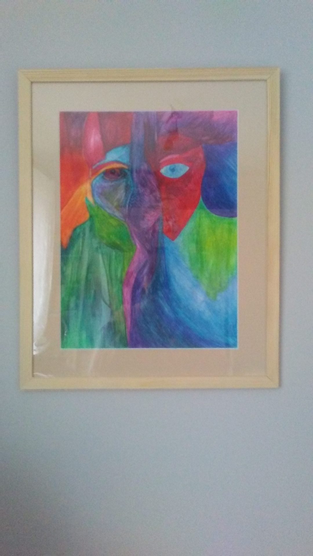 Namalowane na papierze akwarelowym kredkami akwarelowymi.