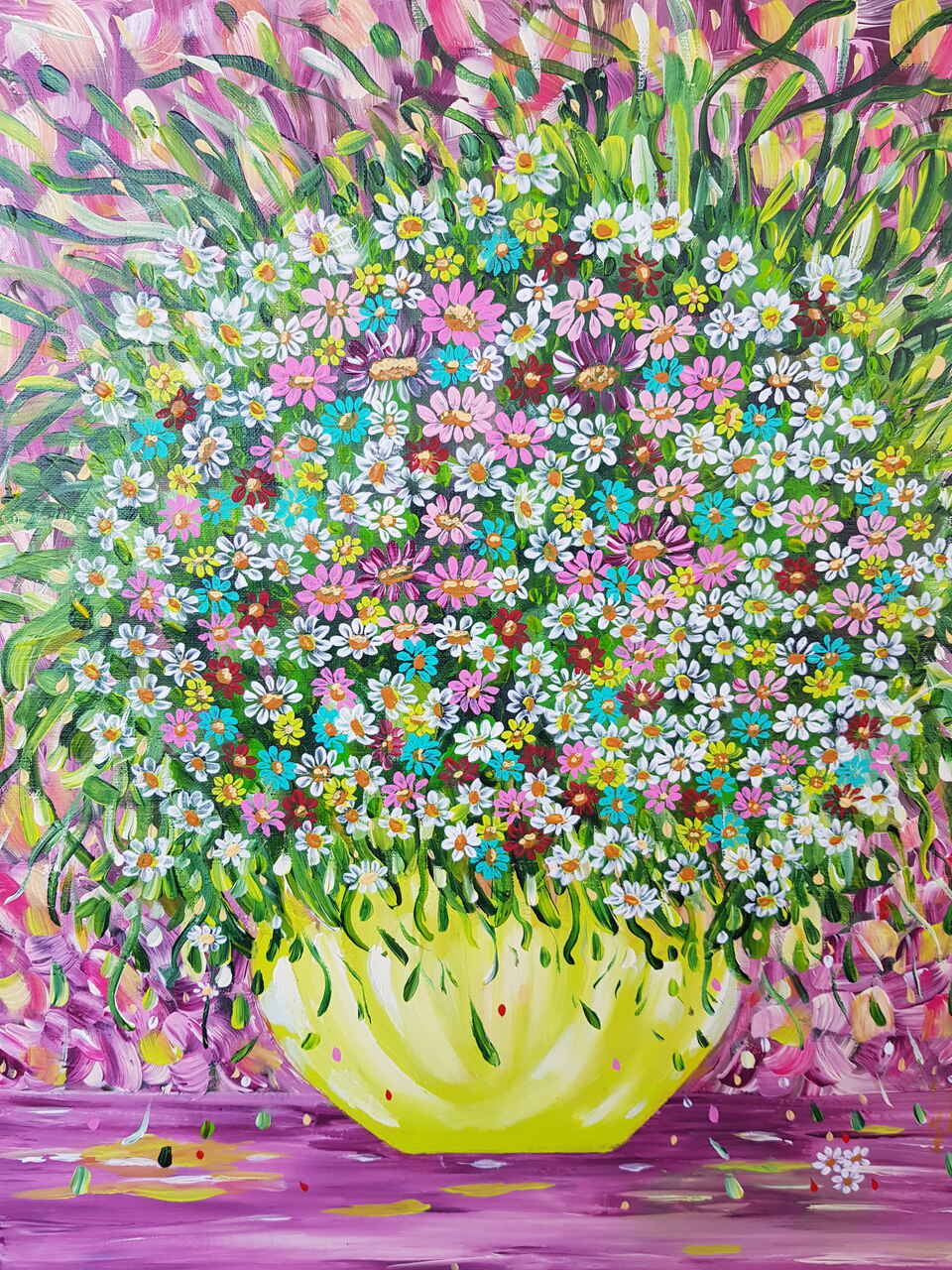 Obraz namalowany ręcznie wysokiej jakości artystycznymi farbami akrylowymi. Podobraziem jest profesjonalne lniane płótno naciągnięte na blejtram. Gramatura płótna 380 gr,/m. Wymiary 50×60. Obraz jest sygnowany i zabezpieczony werniksem. Do obrazu dołączam certyfikat. Obraz jest nowy, mojego autorstwa.