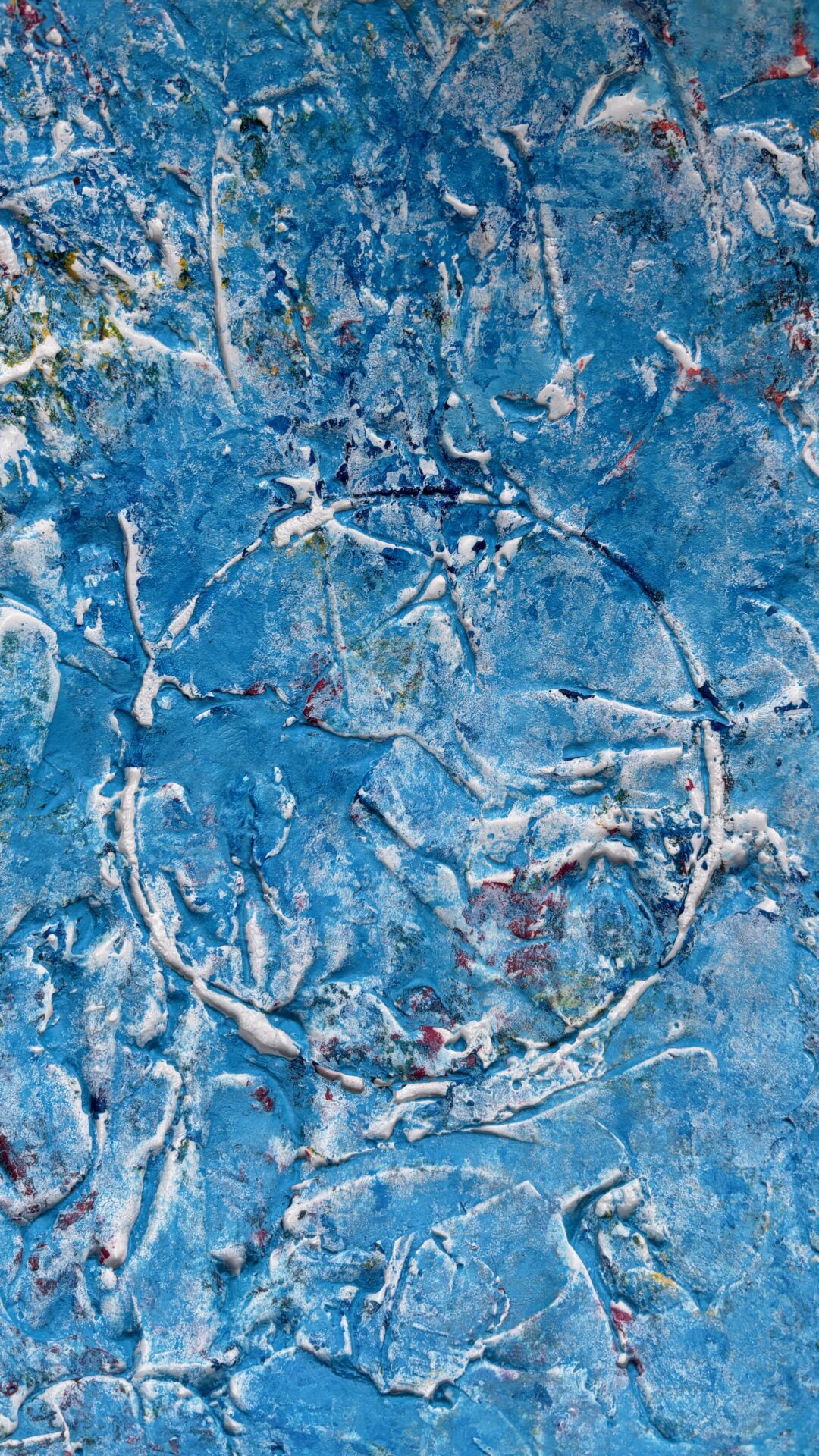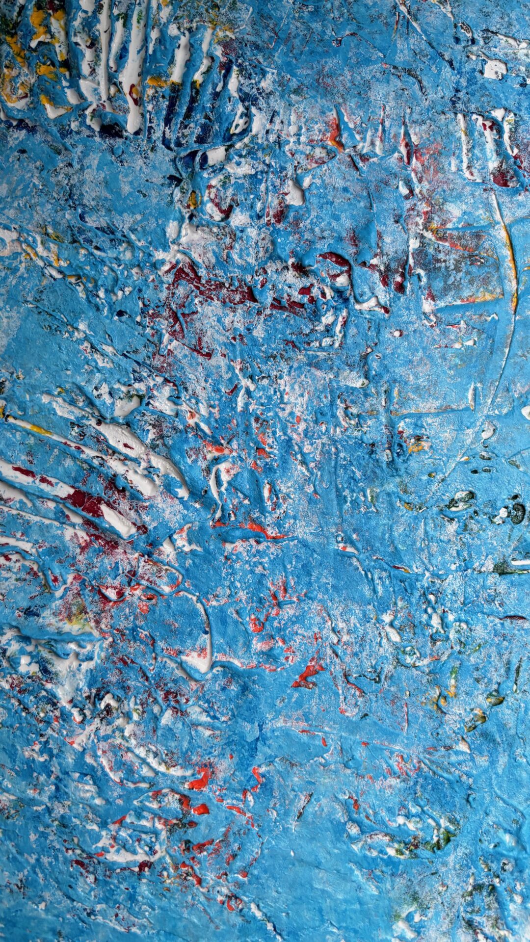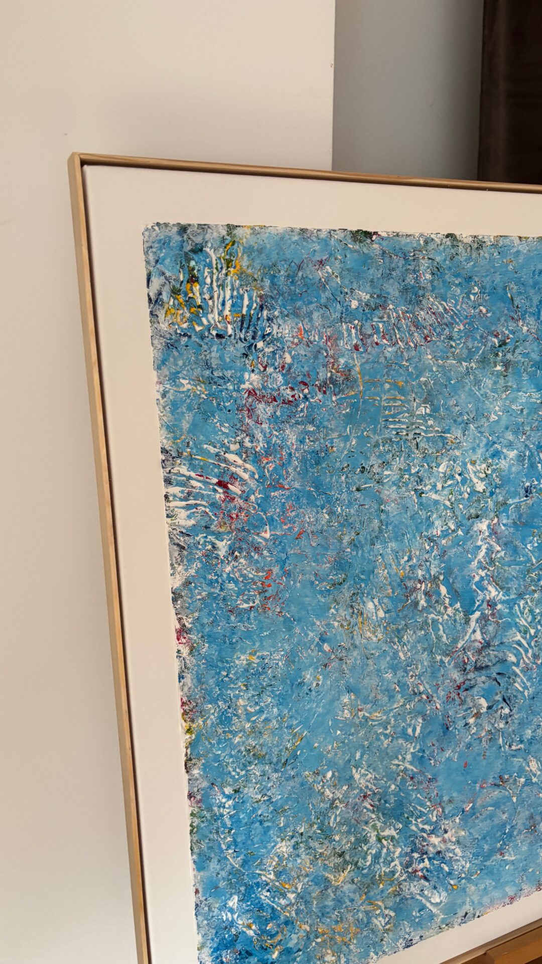 Obraz abstrakcyjny na strukturalnym tle. Oprawiony w ramę, akryl na płótnie, zabezpieczony werniksem.
