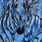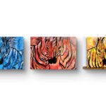 Kompozycja 3 prac akryl na płótnie naciągniętym na bjetram drewniany.