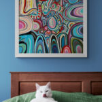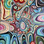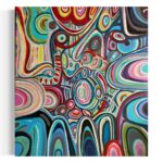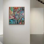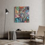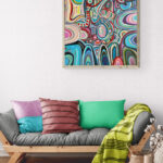 Duży obraz abstrakcyjny, który namalowałam w 2024 roku ma wymiary 80×90 cm. Namalowałam go farbami akrylowymi na podobraziu płóciennym.