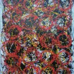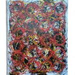 Obraz powstał w nawiązaniu do moich prac z 2018 roku, kiedy tworzyłam również Kompozycje muzyczne. Plątanina z farby działa na zmysły i kojarzy mi się z dźwiękami i muzyką. Temat nieprzedstawiający nic z góry nie narzuca odbiorcy. Można się cieszyć barwą, fakturą i swobodą odbioru.