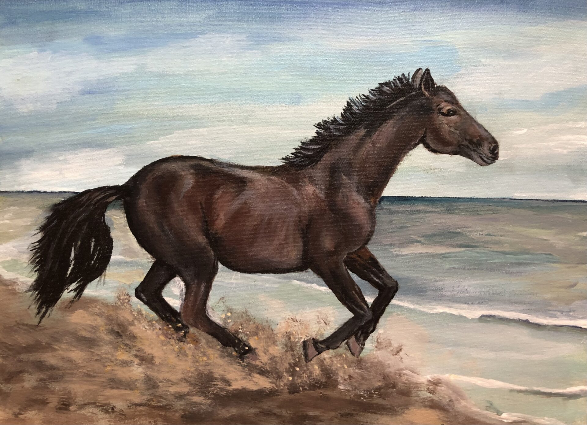 Przedstawiam obraz malowany akrylem na tablicy malarskiej, zabezpieczony werniksem