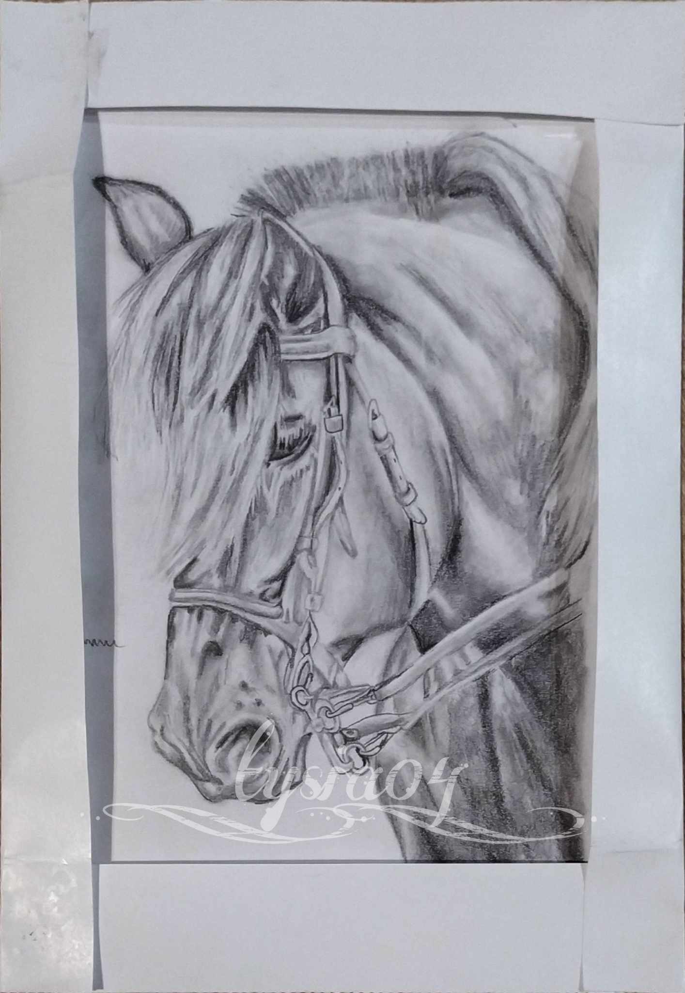 W zestawie jest papierowa ramka, która zakrywa rozdarcie. Można rysunek dowolnie wkładać i wyjmować. Rysunek zajął kilka dni.