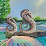 Obraz malowany farbami akrylowymi na płótnie o wymiarach 60 x 50 cm. Inspirowany moim pobytem w Turcji w Side. Nieopodal leży miasto Manavgat, przez które przepływa rzeka o tej samej nazwie z pięknymi płytkimi, ale malowniczymi wodospadami. Właśnie tam, na rzece są wiklinowe rzeźby morskich koników. Zachwyciły mnie.