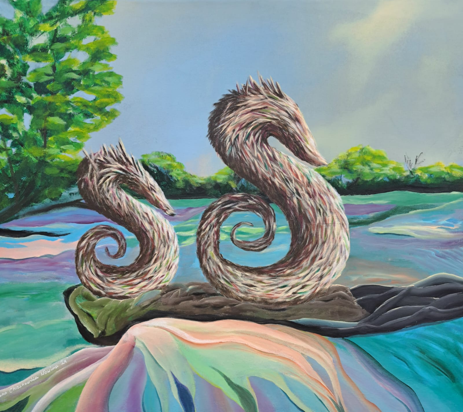 Obraz malowany farbami akrylowymi na płótnie o wymiarach 60 x 50 cm. Inspirowany moim pobytem w Turcji w Side. Nieopodal leży miasto Manavgat, przez które przepływa rzeka o tej samej nazwie z pięknymi płytkimi, ale malowniczymi wodospadami. Właśnie tam, na rzece są wiklinowe rzeźby morskich koników. Zachwyciły mnie.