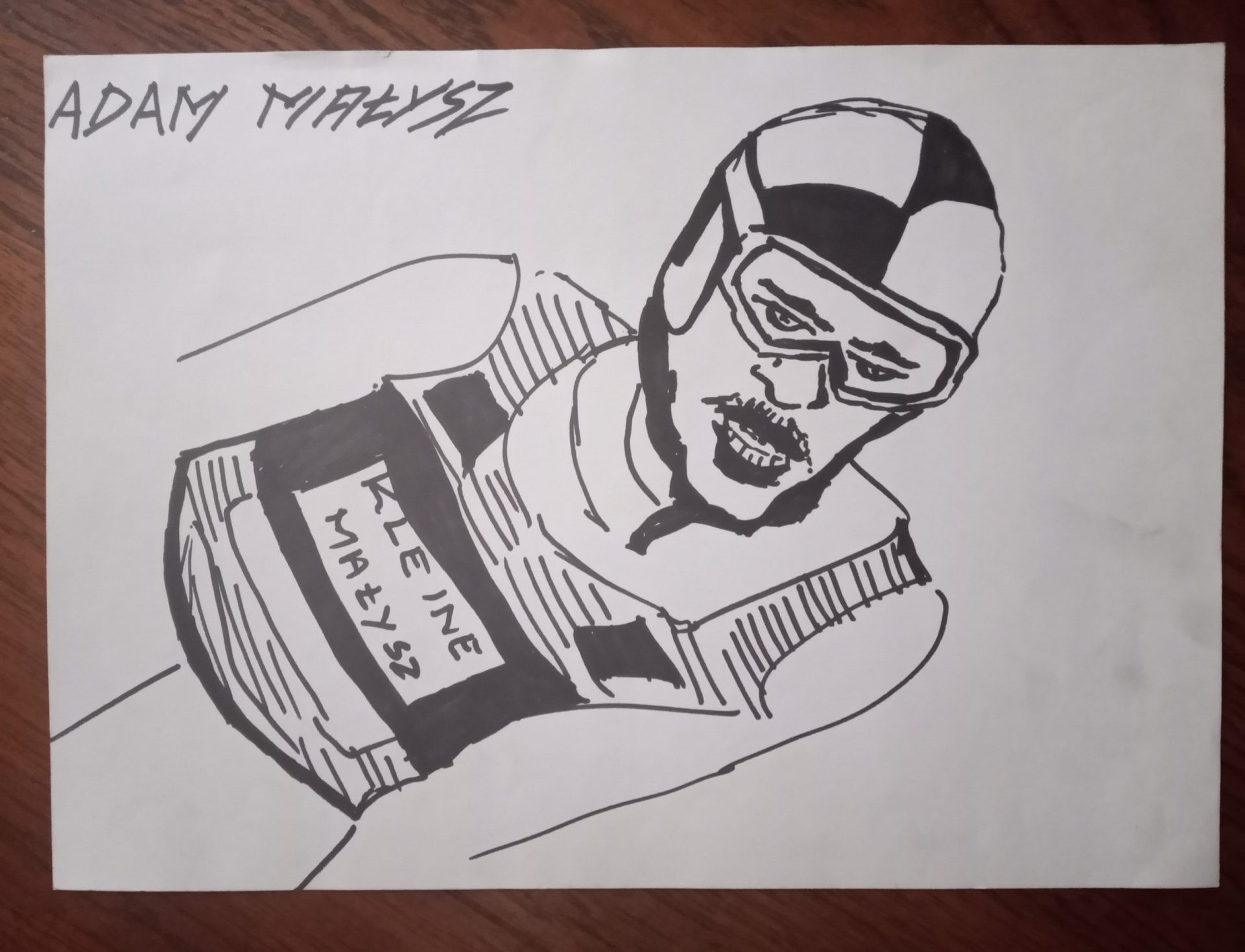 Rysunek powstał na warszawskim Mokotowie chwilę po wygranej Adama Małysza w skokach narciarskich w konkursie czterech skoczni w roku 2001