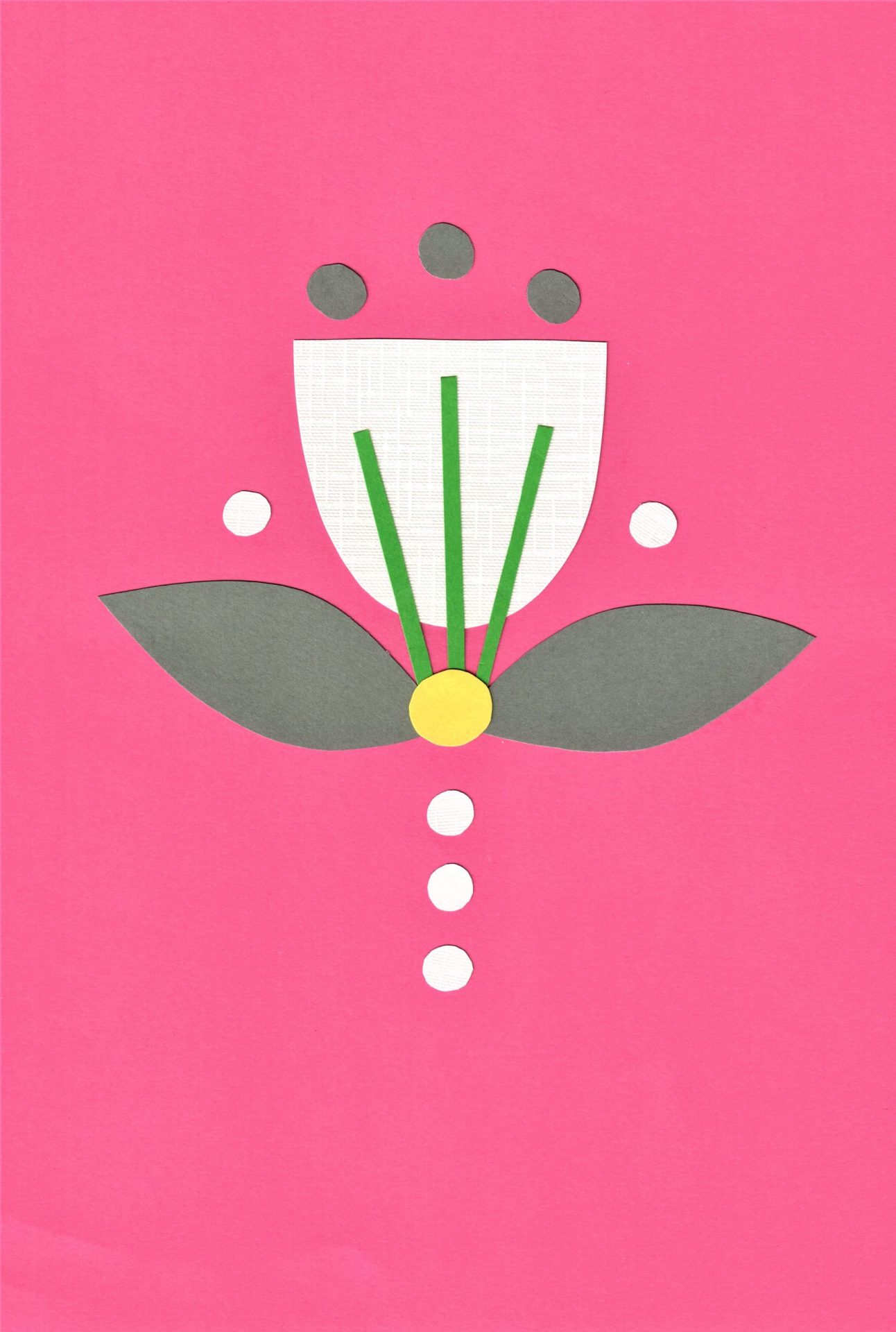 Kwiat. Technika: kolaż, papier. Format A4, idealny do pokoju dziecka lub do dowolnego pomieszczenia, by dodać nutkę beztroski.