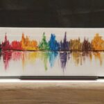 Obraz o wymiarach 74 x 28, grubość 1 cm, akryl, malowany na płycie regips, zabezpieczony werniksem, leciutki połysk.