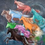 Koń jest dla mnie symbolem wolności, chociaż w naszym świecie tak nie jest. Pomysł powstał, jak jechałam za dużym samochodem transportującym konie. Moje konie opuszczają naszą planetę, by nie zaznawać zniewolenia. Boki obrazu są zamalowane, zamontowana jest zawieszka.