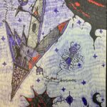 Rysunek wykonany cienkopisami i długopisami na kartce z bloku technicznego.