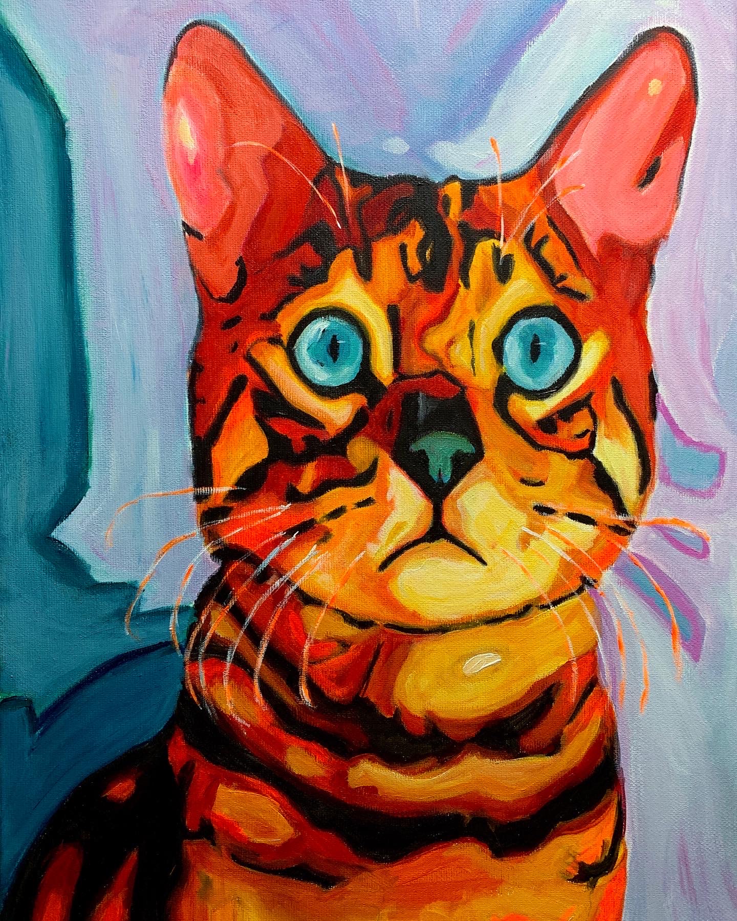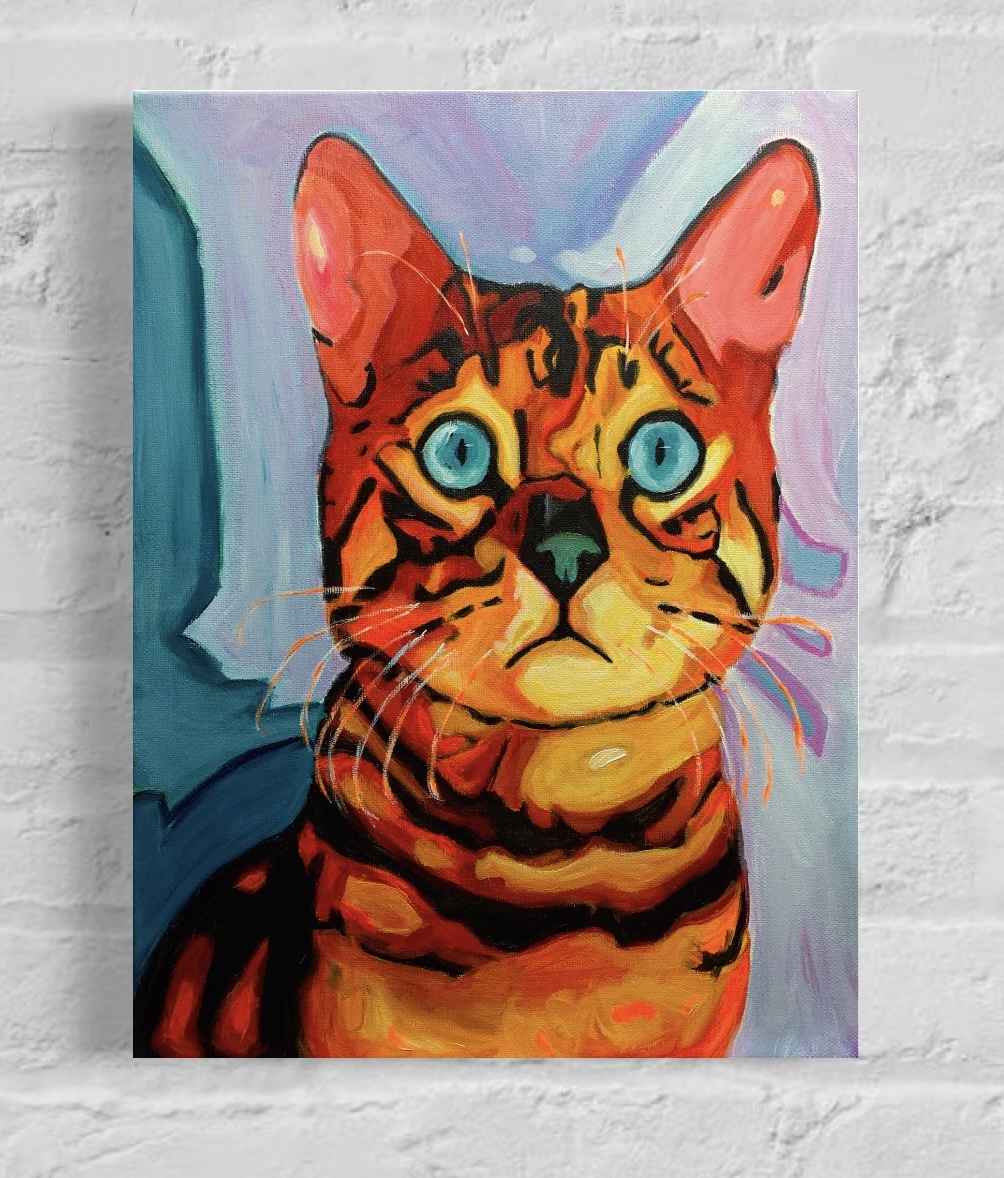 Piękny obraz kotka bengalskiego malowany ręcznie akrylami na płótnie. Wymiary – 30 x 40 cm
