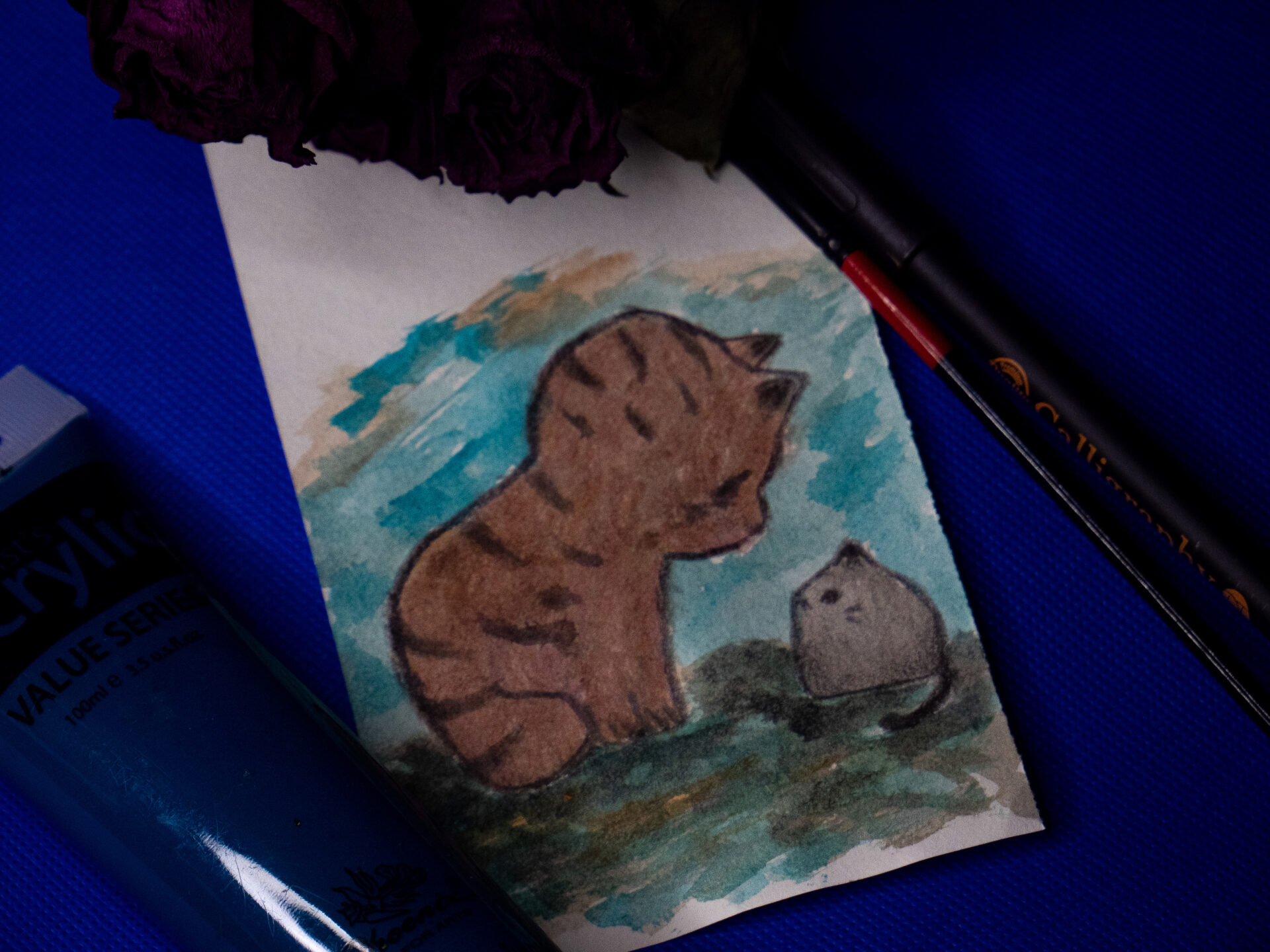 Kotek został wykonany na podstawie zdjęcia. Namalowany farbami akrylowymi. Powstawał 2 dni
