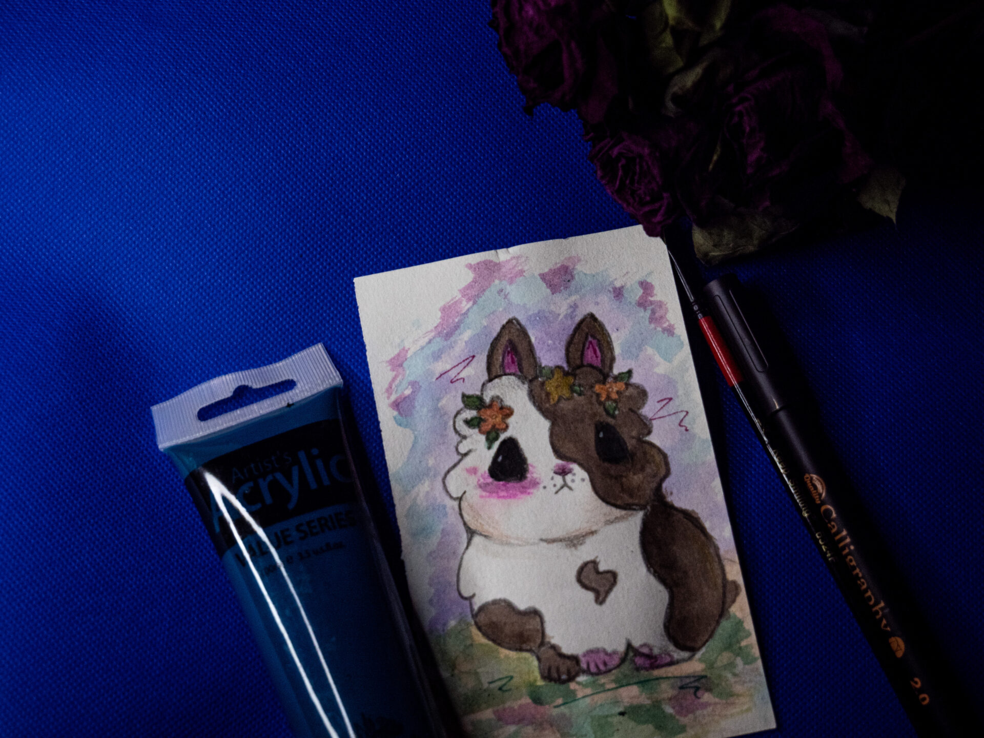 Malunek króliczka stworzony z pamięci. Wykonany farbami akrylowymi . Czas wykonania ok. 2 dni
