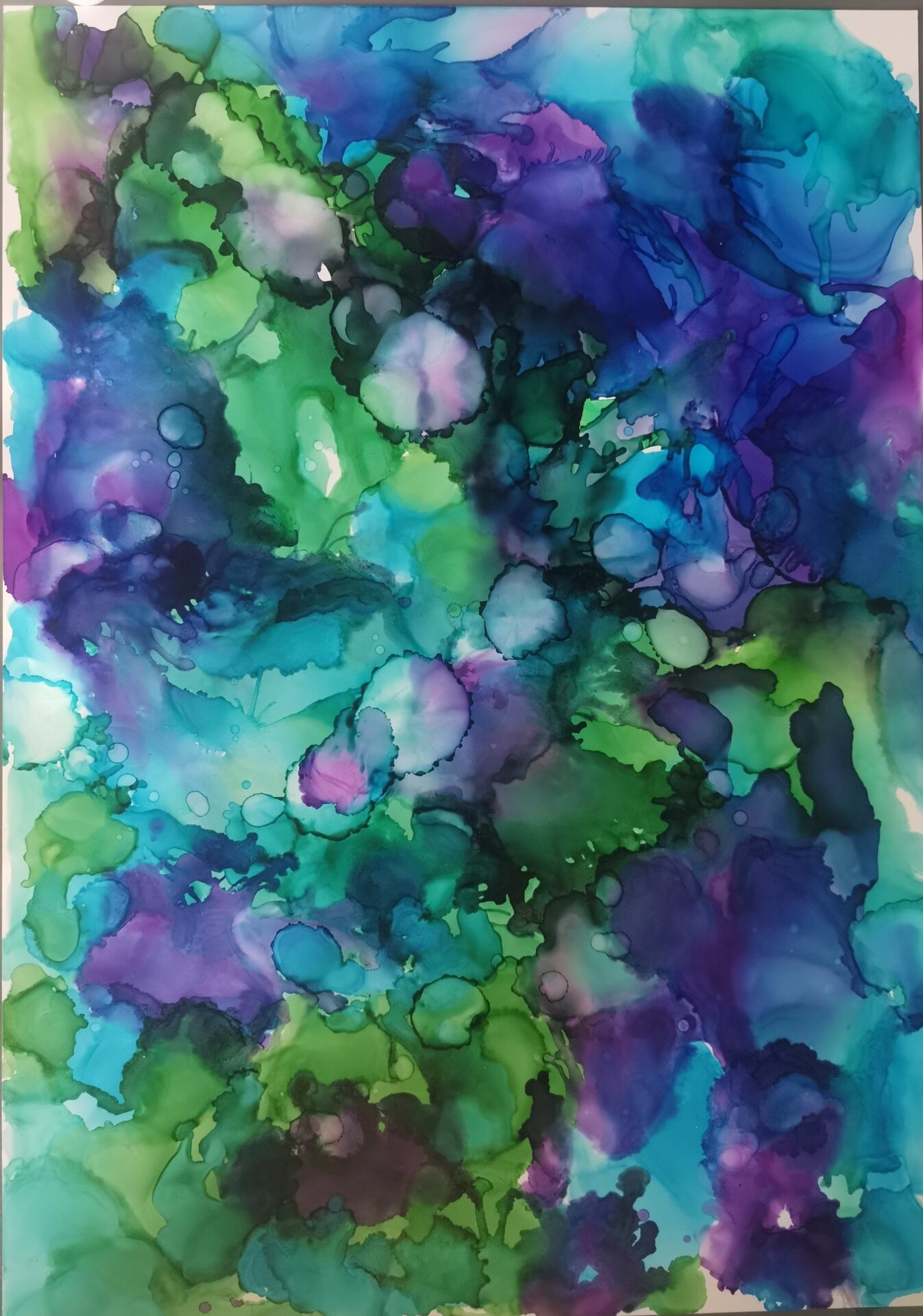 Obraz stworzony z tuszy alkoholowych. Malowany na papierze przeznaczonym do tuszy. Obraz ma wymiary 30×42 cm.