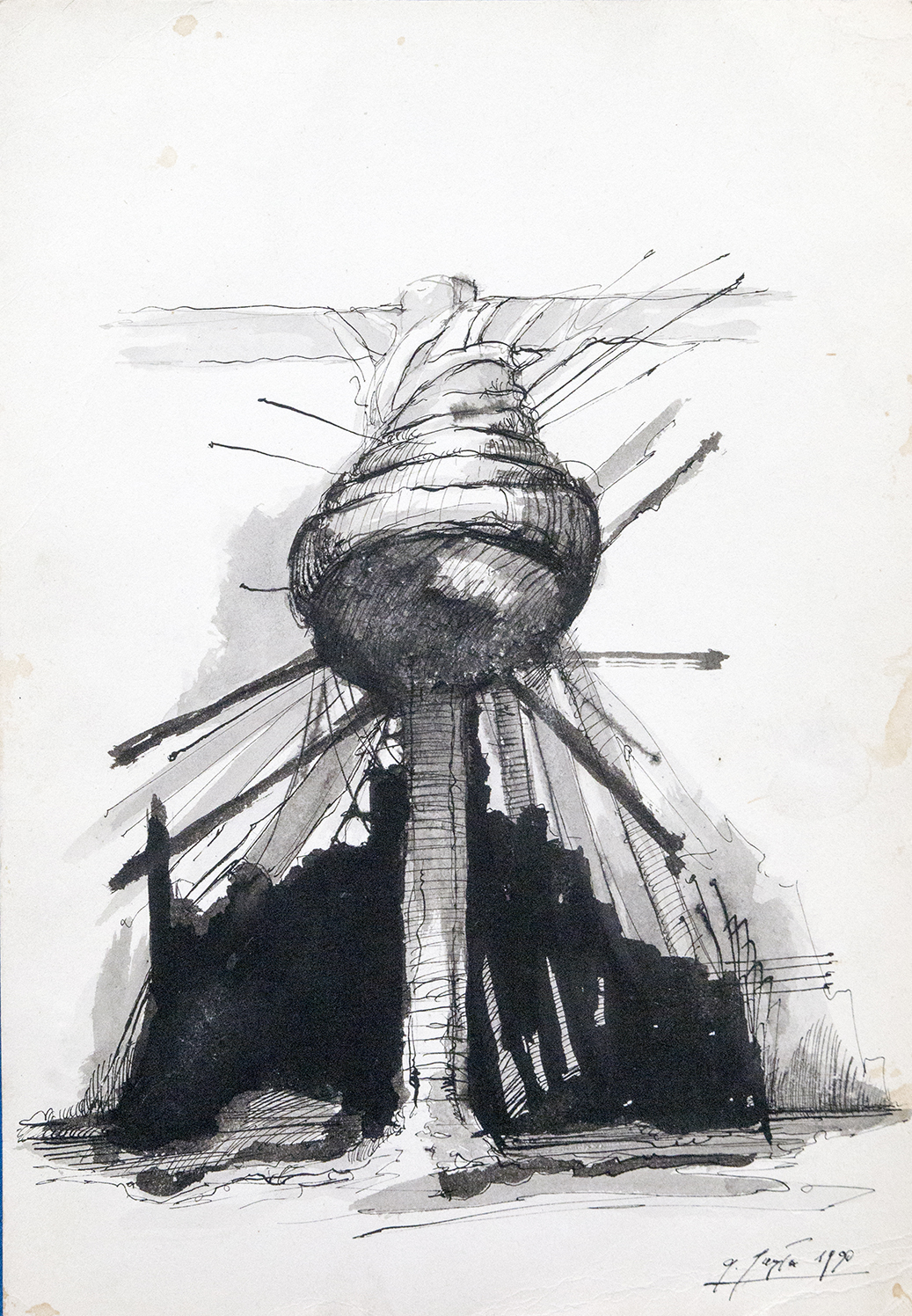 Praca w tuszu rysunek z 1990r na papierze talensa nie oprawiona.Praca pochodzi z okresu mojej fascynacji p.Z.Beksińskim…Cena dotyczy reprodukcji na papierze fotograficznym 30 x 20 cm .Każda praca jest sygnowana z tyłu.