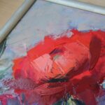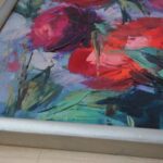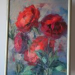 Przedstawiam obraz olejny na płótnie, malowany za pomocą szpachli, posiada fakturę. Obraz jest oprawiony w drewnianą ramę w kolorze starego złota ( srebrno – złoty). Rozmiar płótna 40cm x 50 cm, z ramą 43cm x 53cm.
