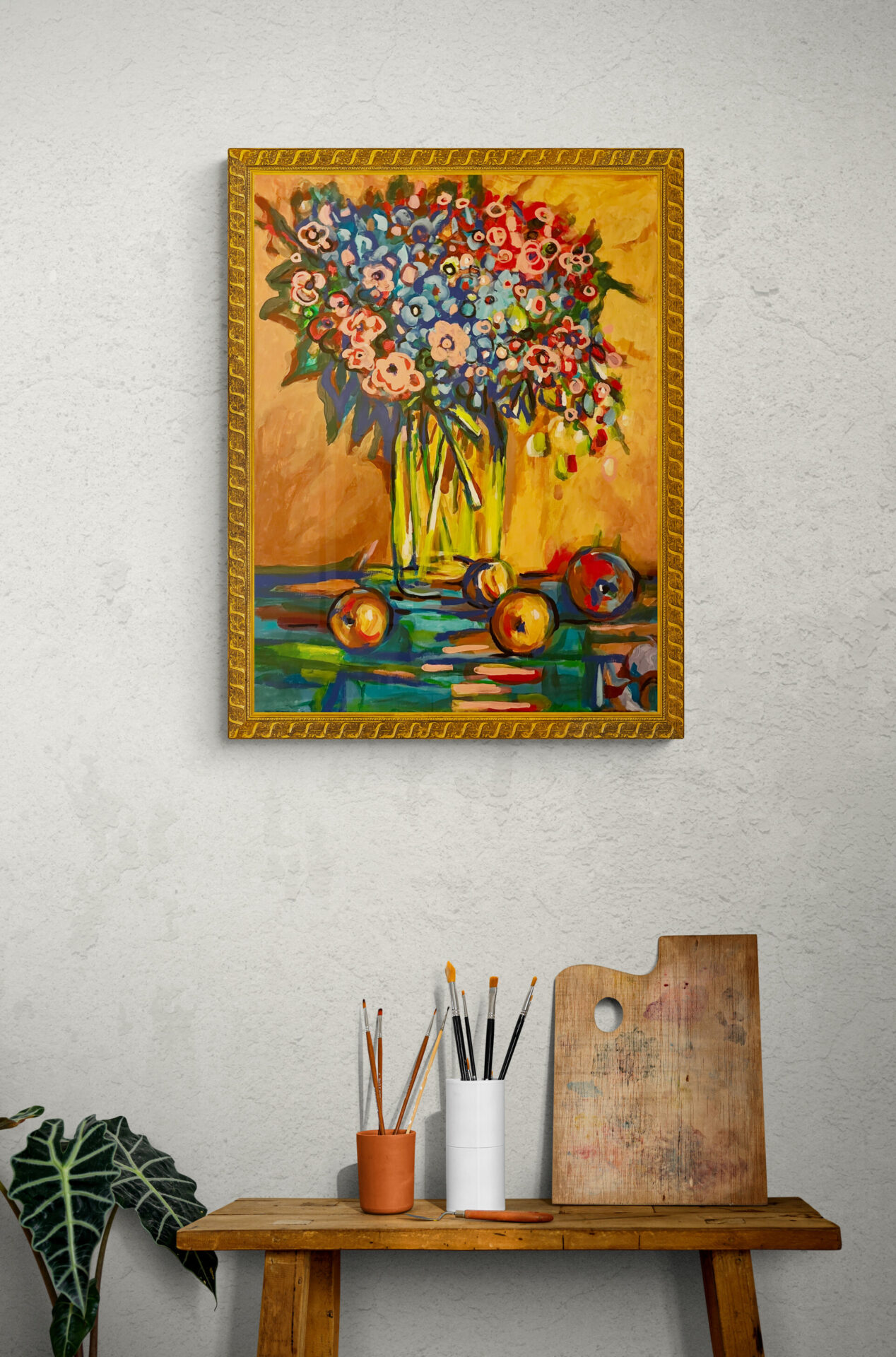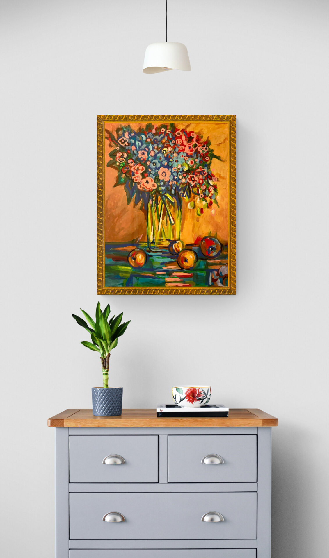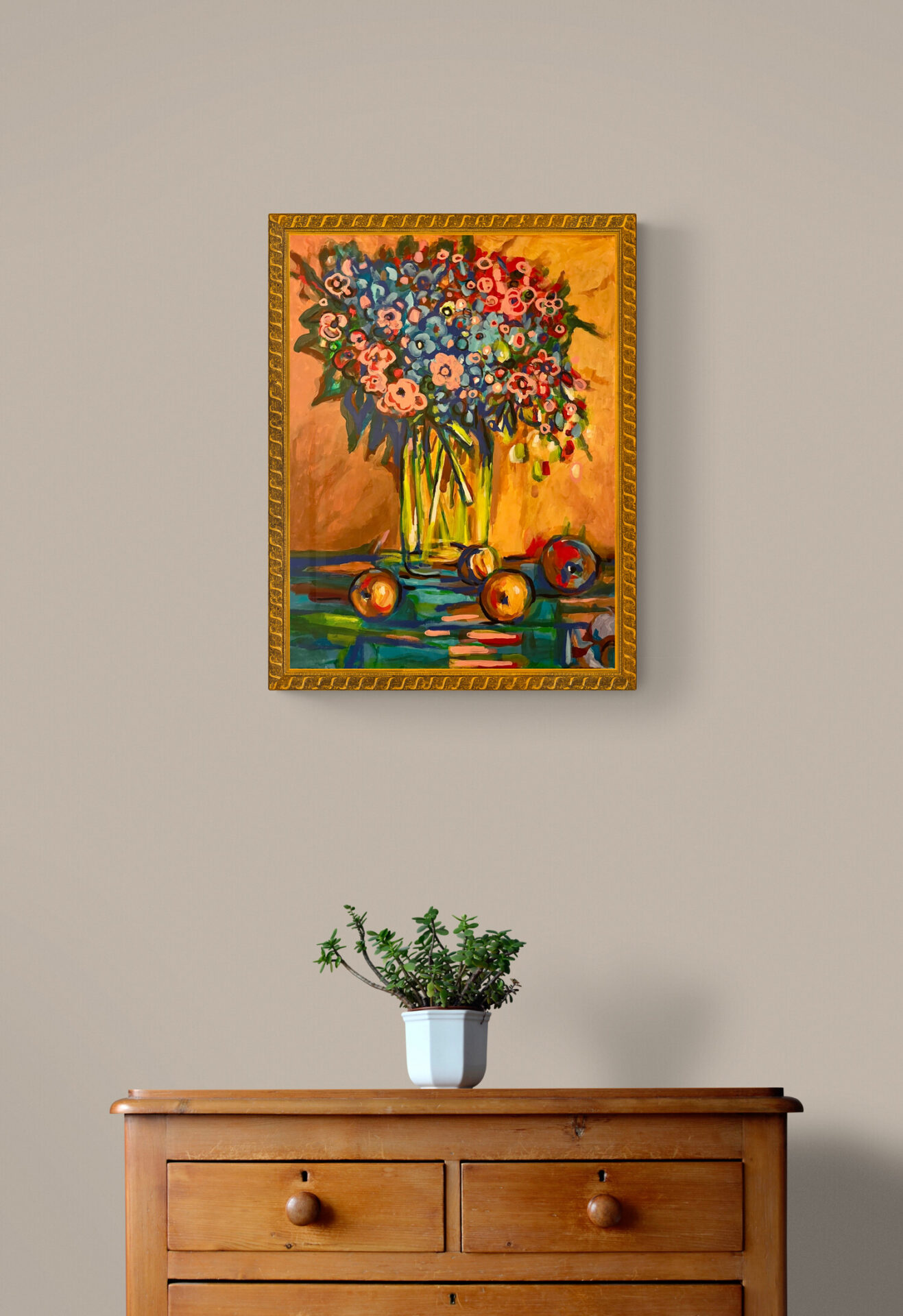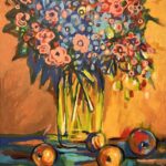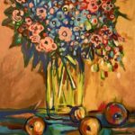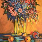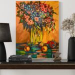 Obraz przedstawiający kwiaty w wazonie