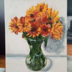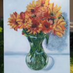 Farby akrylowe na panelu malarskim ze złotą farba,którą widać na zbliżeniach ,nie mogłam się powstrzymać by nie uwiecznić na obrazie mojego pięknego bukietu