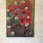 Kwiaty z mojego ogrodu z Ćmą Niedźwiedziówką. Obraz w pełni oddaje błogość letniego popołudnia. Namalowany farbami akrylowymi, na podobraziu malarskim i zabezpieczony werniksem satynowym, stanowi całość z bokami. Przedstawia kwiaty z mojego ogrodu z sympatycznym gościem, który zatrzymał się na chwile. Obraz namalowany w lipcu 2021 roku i zawiera sygnaturę.