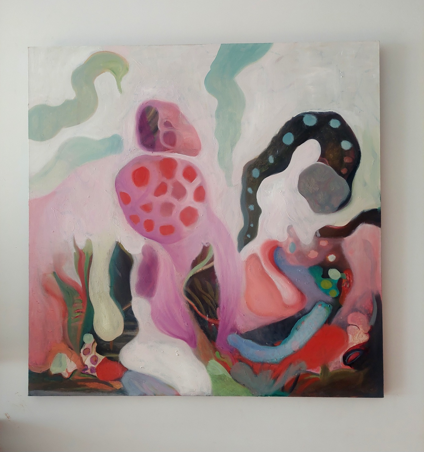 Jest to obraz olejny o wymiarach 100/100 cm.